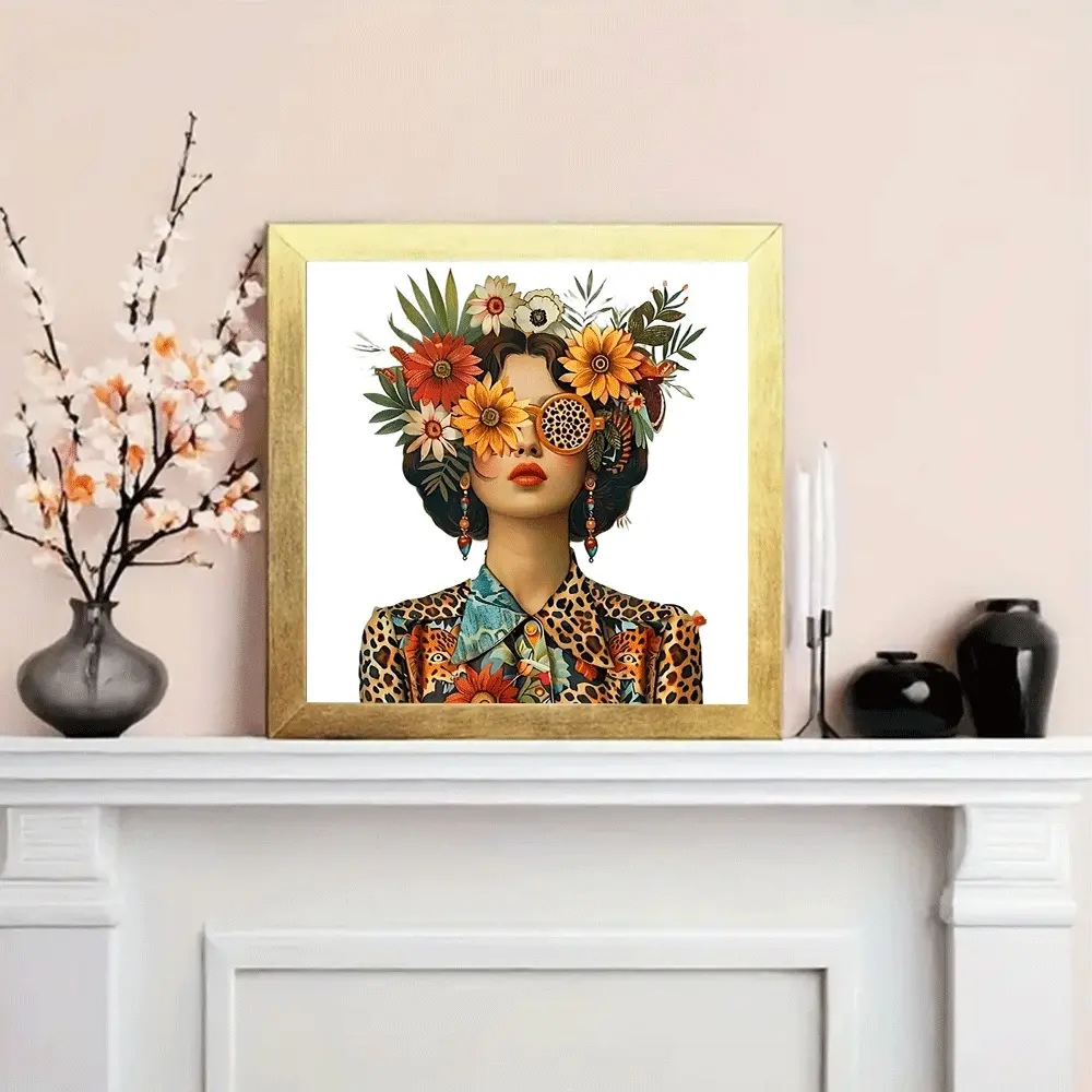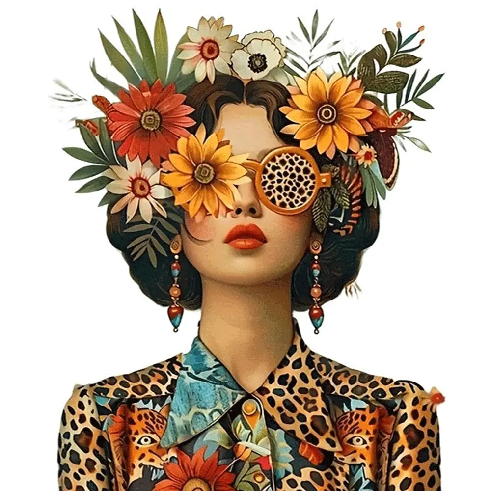 1PC 5D diamond painting 2D flat printing Diamond Painting Kit for Adults DIY Flower Leopard Print Art Home Decor with Sunflower Headpiece Design Rhinestone Embroidery Craft Supply