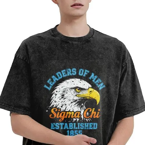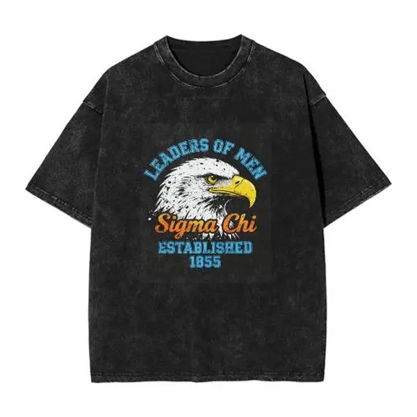5. Retro Washed Sigma Chi Eagle Graphic Tee - Established 1855 Fraternity Oversized T-Shirt