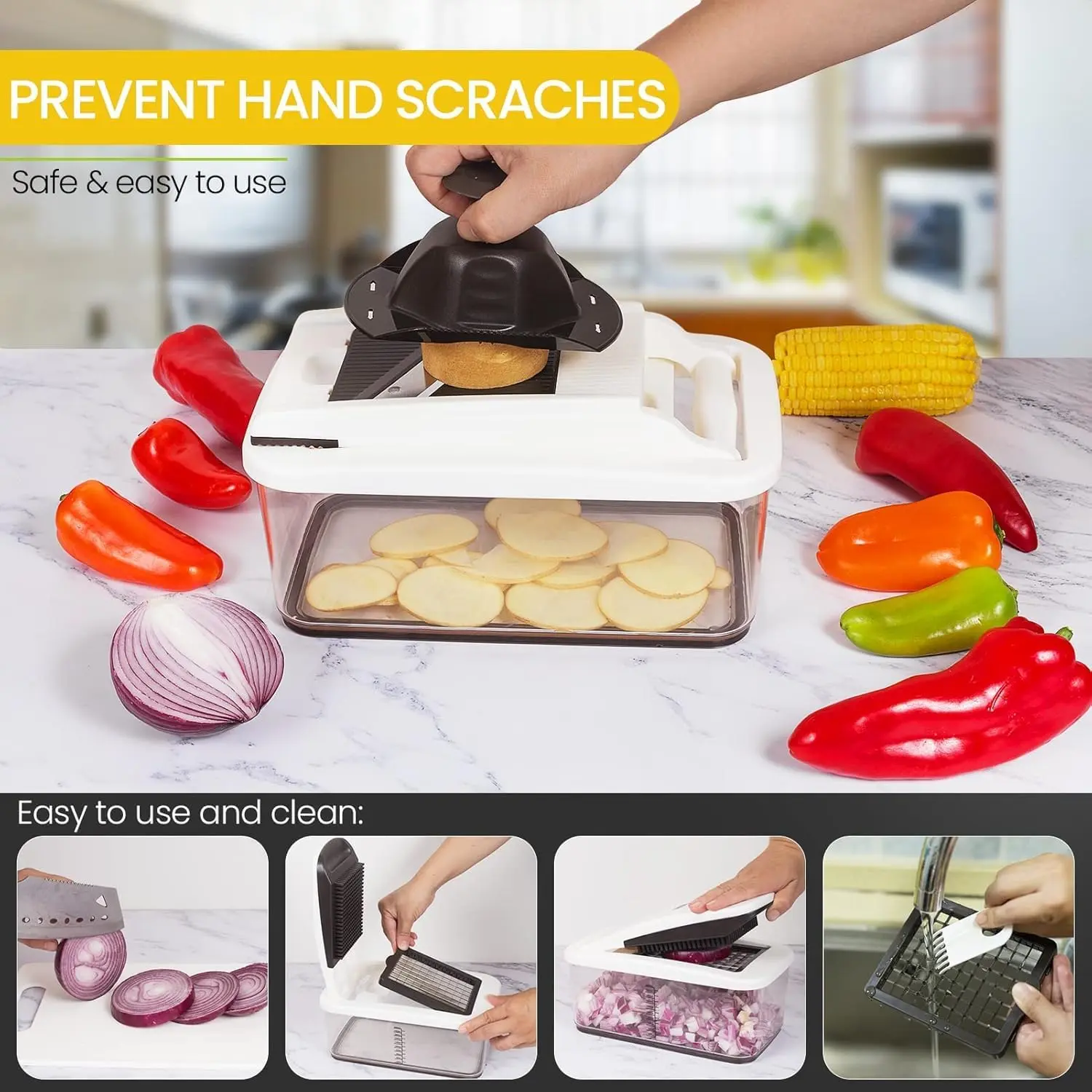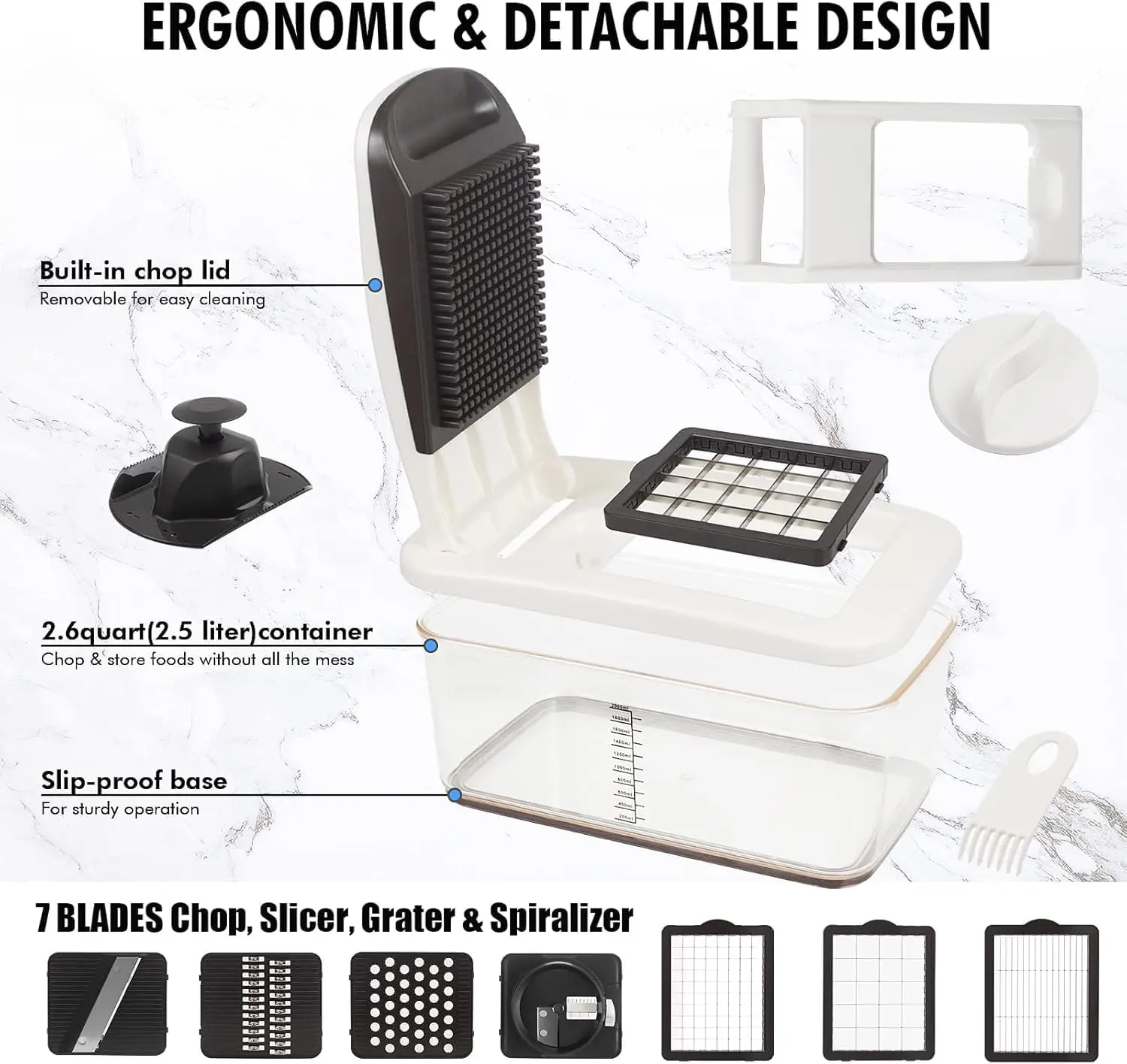 Vegetable Chopper with Container – RüK 10-in-1 Food Chopper, Extra Large Veggie Cutter with 6 Blades & Spiralizers for Kitchen Prep