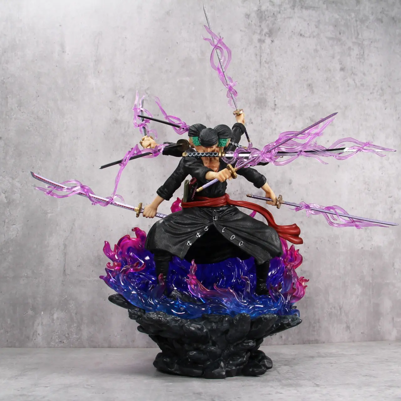 One Piece Zoro Nine-Blade Sword Figure Figurine Statue, Three-Head Six-Arm Asura Collectible Display, Perfect Gift for Boys, Anime Fan Favorite