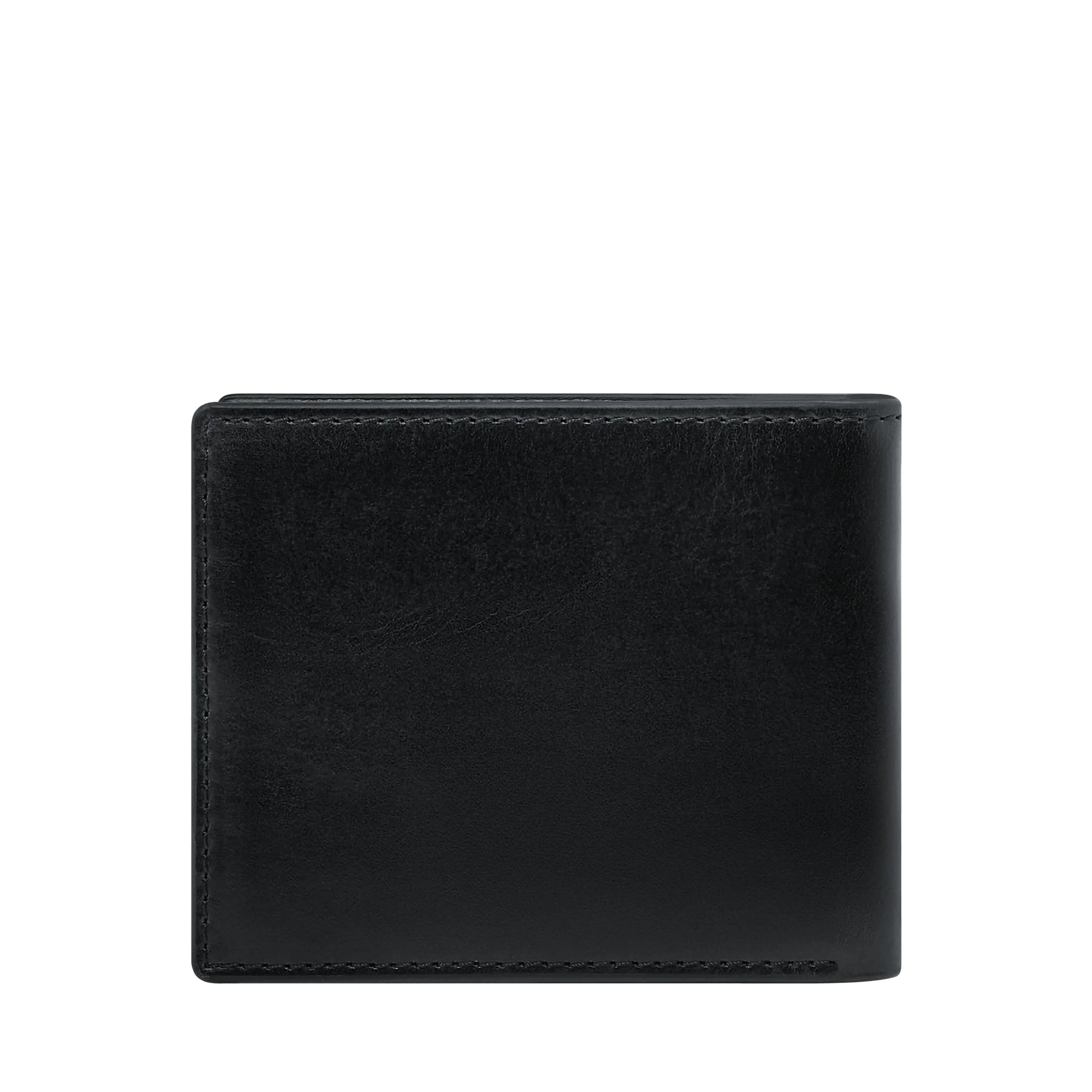 Crafted from rich black leather with a smooth grain, this slim billfold protects your cards with RFID-blocking technology. Inside, six card slots and two slide pockets keep you organized on the go. Sleek and secure, it's the accessory you'll reach for every day. Fossil leather products support responsible manufacturing via the Leather Working Group.