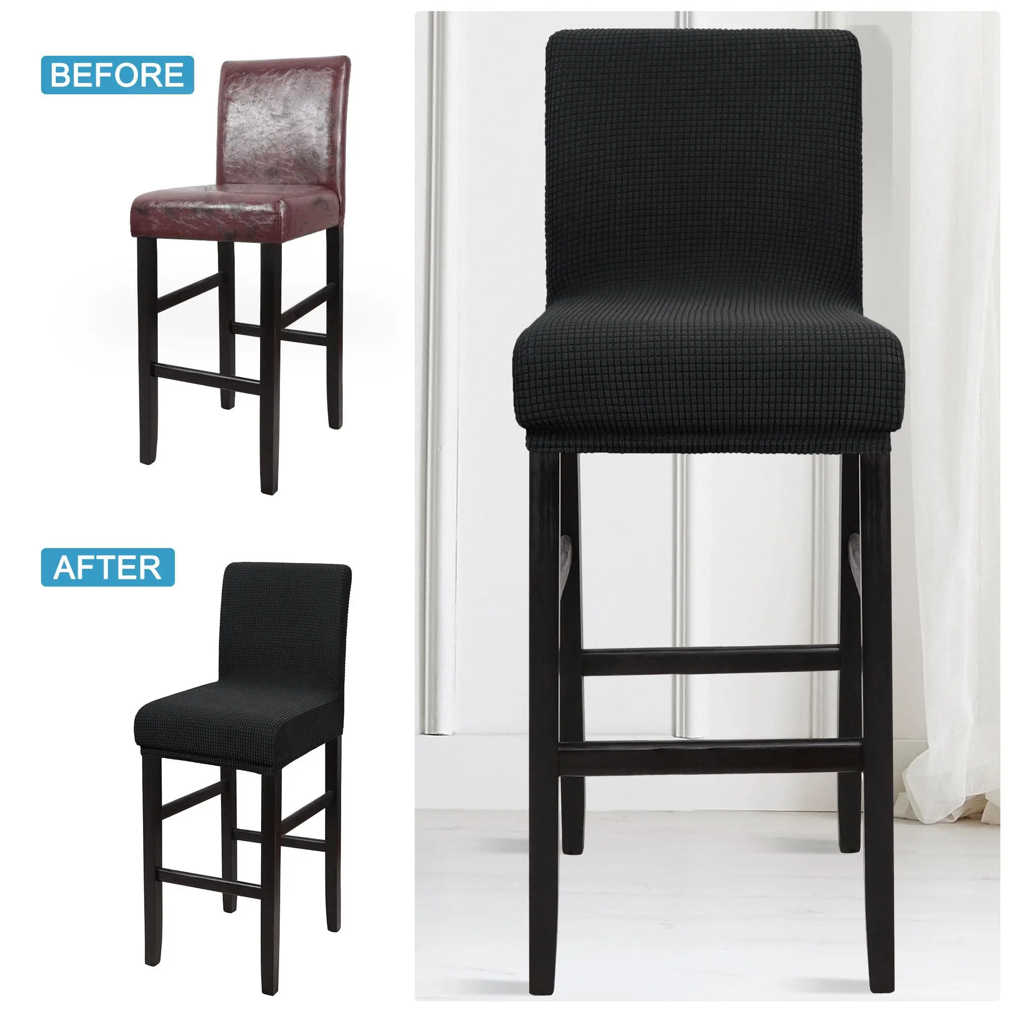 Our barstool covers can help you hide the old chair, let your old chair look like new one and more beautiful. And the fashion design will bring a fresh and luxious look to your home. Barstool covers are functional, beautiful and save you money by extending the life of your chair. It is easy to install and take off, machine washable, best partner for outdated but still stool chair.