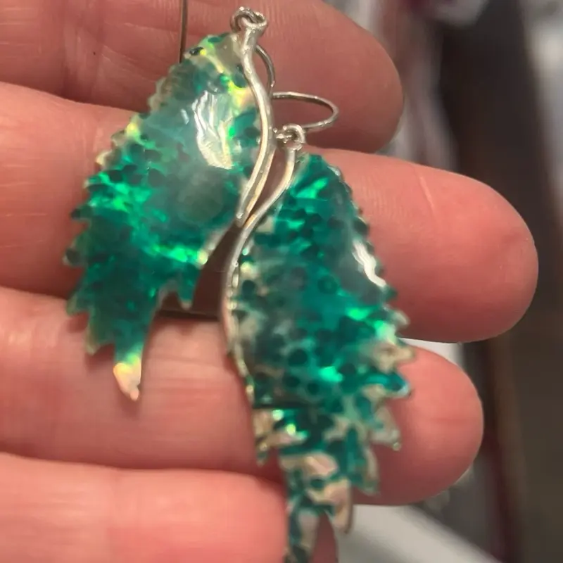 These Abalone Wing Earrings are crafted in sterling silver, offering a timeless piece of jewelry. The real abalone shell adds a natural, iridescent touch, making each earring unique. Perfect for any occasion, these earrings are a versatile addition to your collection.