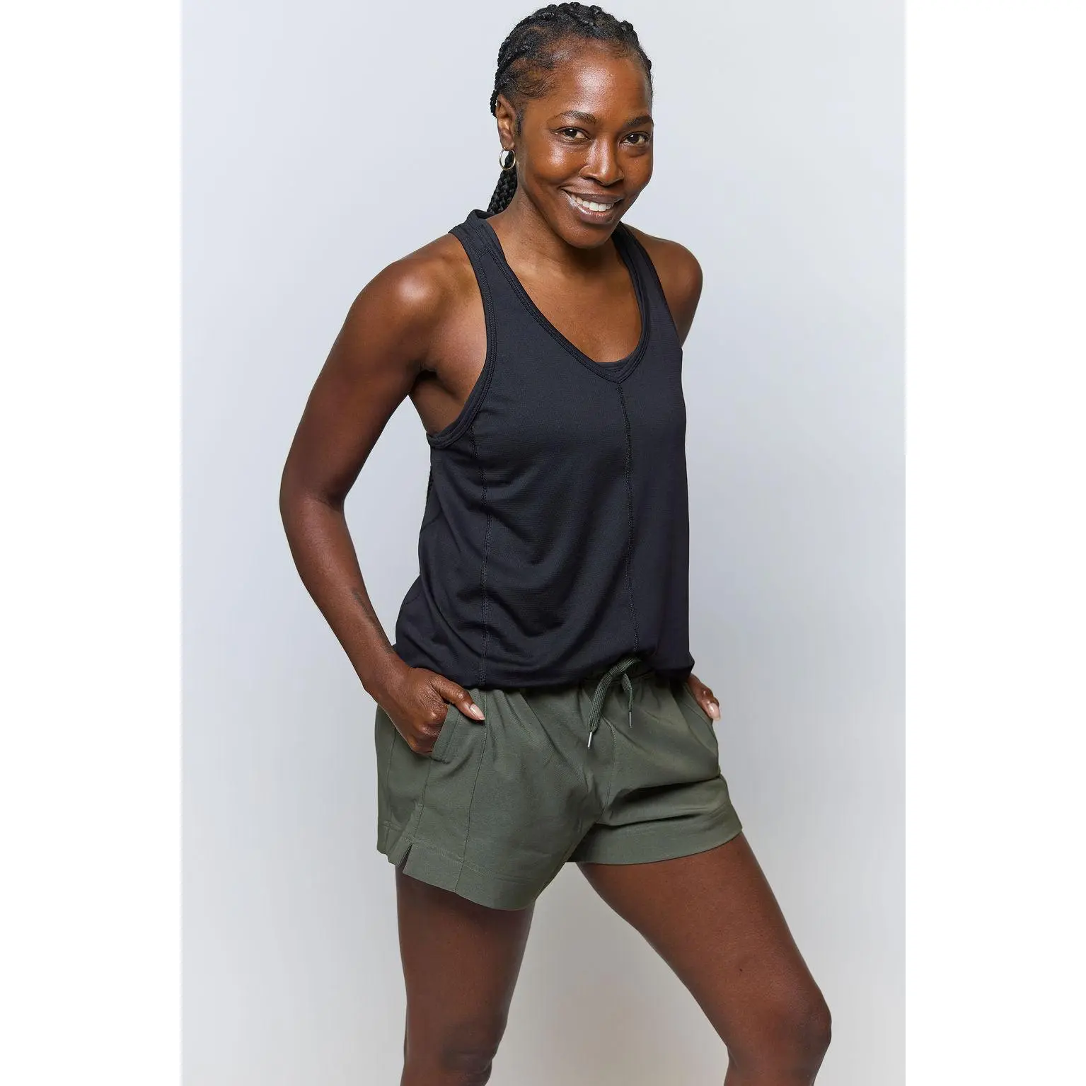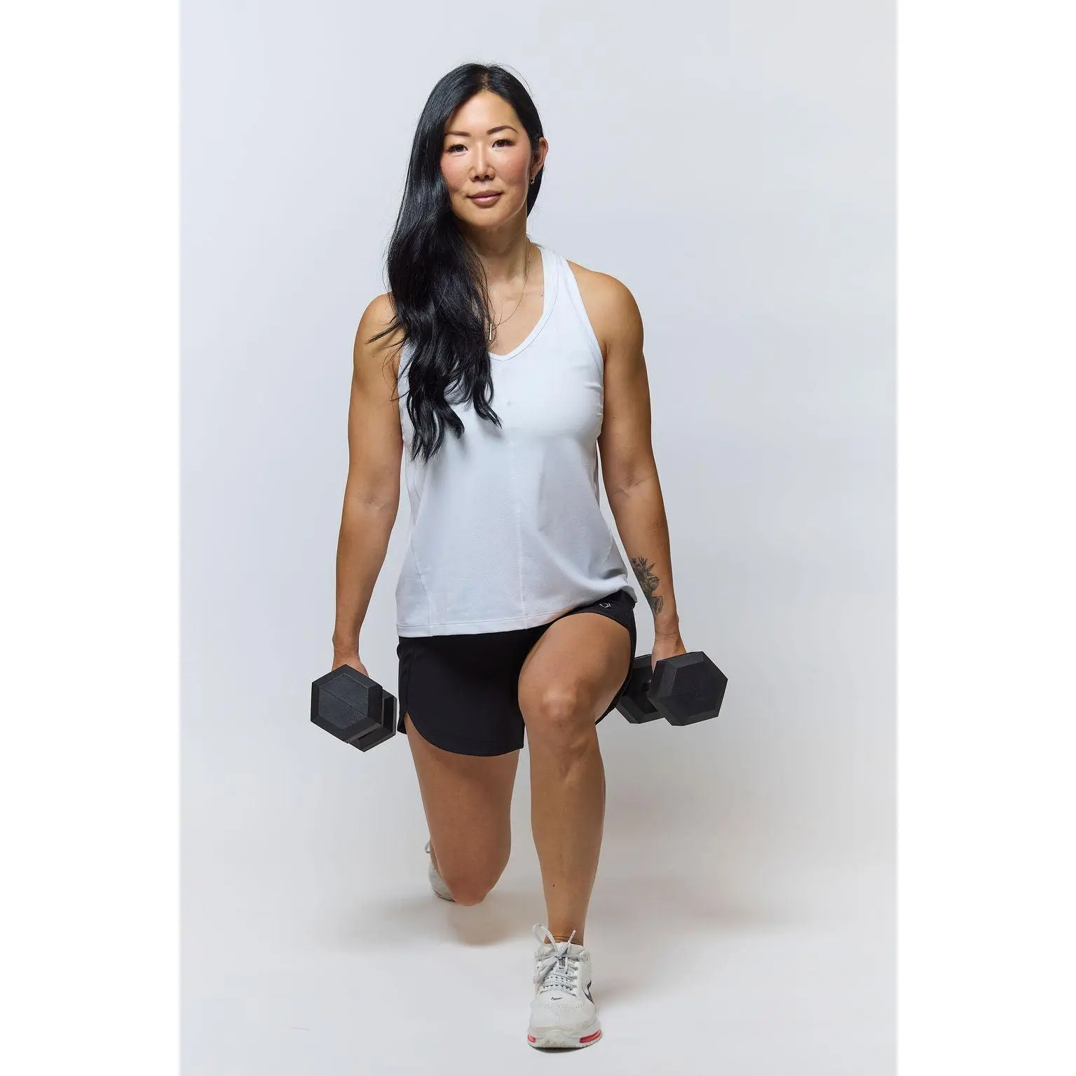 With a roomy silhouette and breathable, ultra-soft, sweat-wicking mesh, this tank keeps you cool and confident no matter how hard you train. The flattering V-neck and shaped hem offer just the right amount of coverage, so you can stay focused on your form, not your fit.