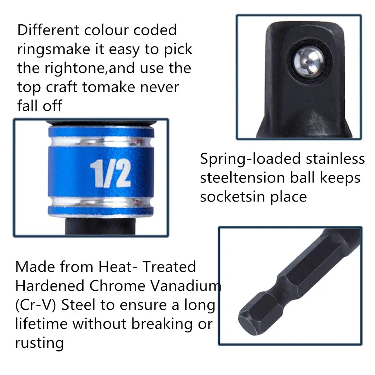 Stop changing tools every few minutes during repair jobs. This 3-piece socket adapter set lets you quickly turn your power drill or impact driver into a fast, practical socket wrench for everyday tightening, repair, assembly, and maintenance work. With 1/4", 3/8", and 1/2" drive sizes included, it helps you handle different sockets with less hassle and better efficiency. Made from durable Cr-V steel and designed with a universal 1/4" hex shank, these adapters are built for automotive repair, furniture assembly, garage work, mechanical tasks, and DIY jobs around the house.