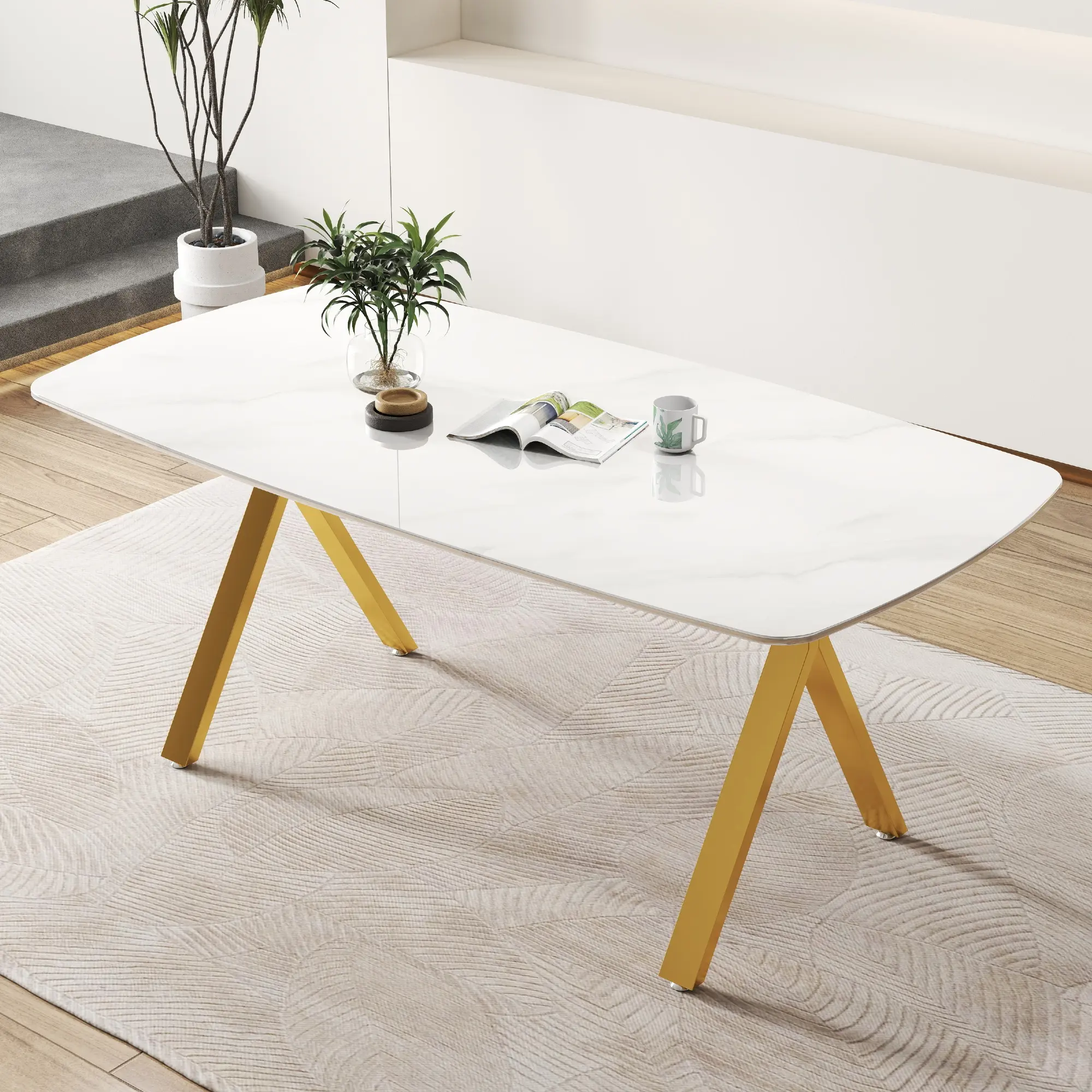 • Tempered Glass Top: Features a realistic marble pattern. Scratch-resistant and easy to clean, perfect for daily meals or parties. The sleek design adds elegance to any room.
