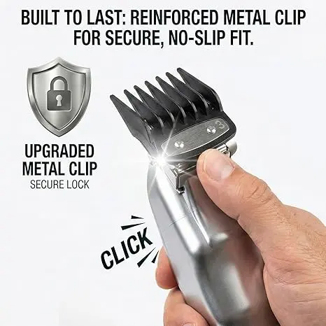 2026 8-Piece Clipper Guard Set – Black, fits most Wahl clippers, cuts from skin-close to 1 inch. Snap on, fade like a pro, and never second‑guess your length again. Your home barber kit just got a serious upgrade.