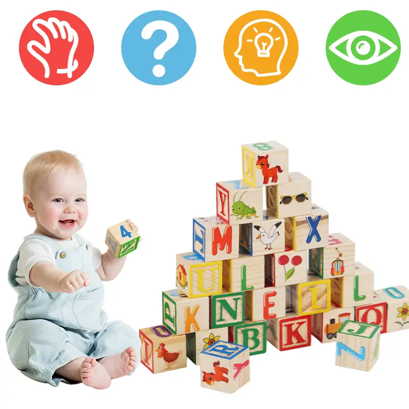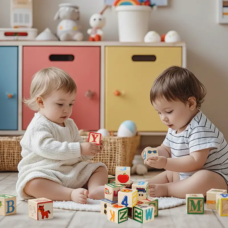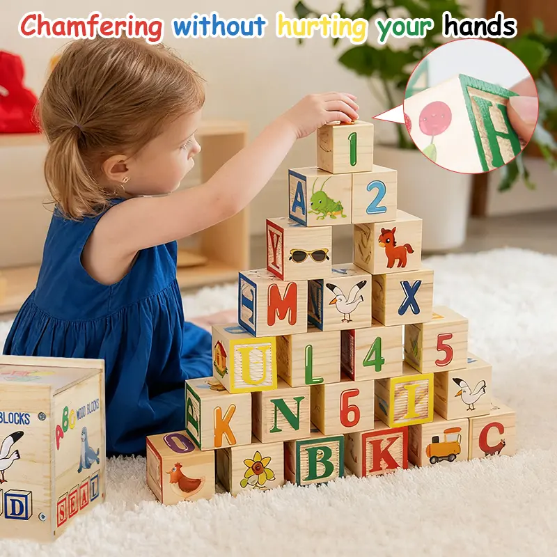 Turn playtime into learning time! Block sides feature letters, numbers, animals, and shapes to teach alphabet recognition, colors, and early vocabulary. The logical letter-picture pairing (like 'C' for 'Cat') makes learning to read fun and intuitive.