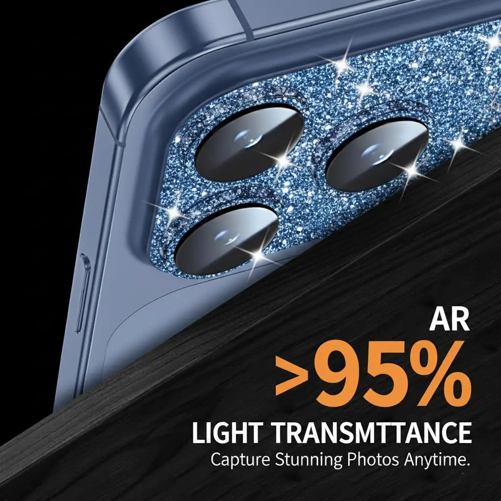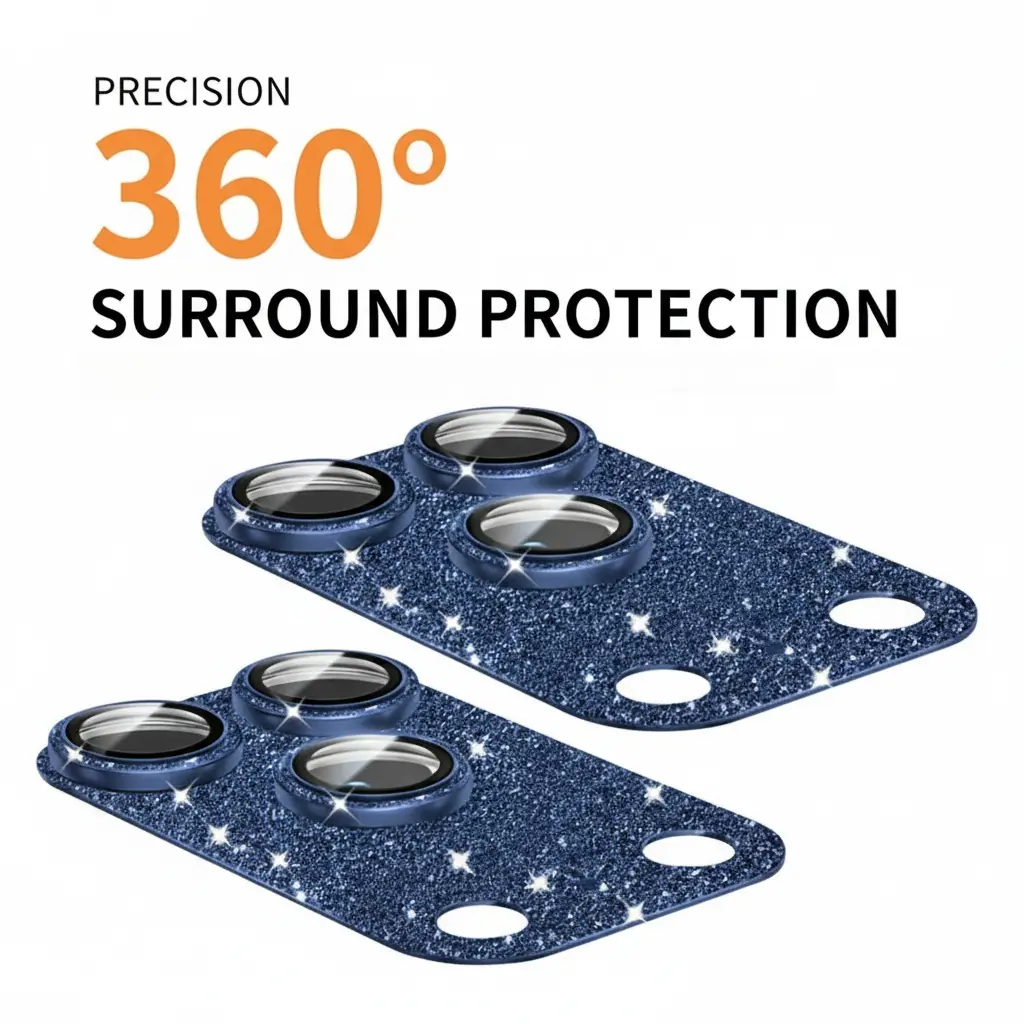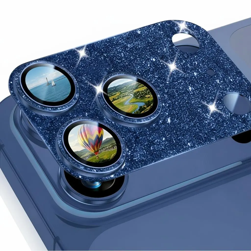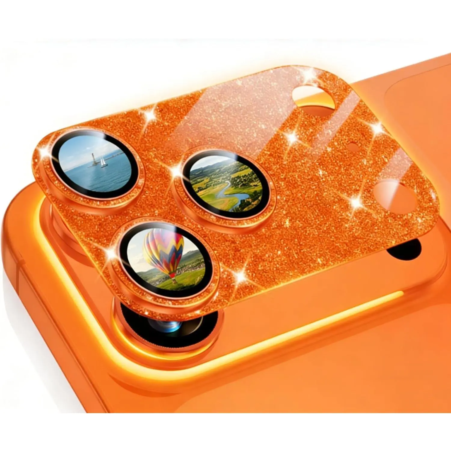 Bling Rhinestone Camera Lens Cover for iPhone 17 Pro Max, 9H Hard Glass Protector, Scratch Resistant, Full Protection, Stylish Sparkle Design (Cosmic Orange Blue)