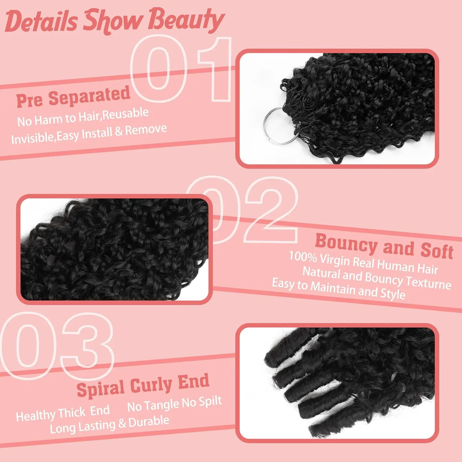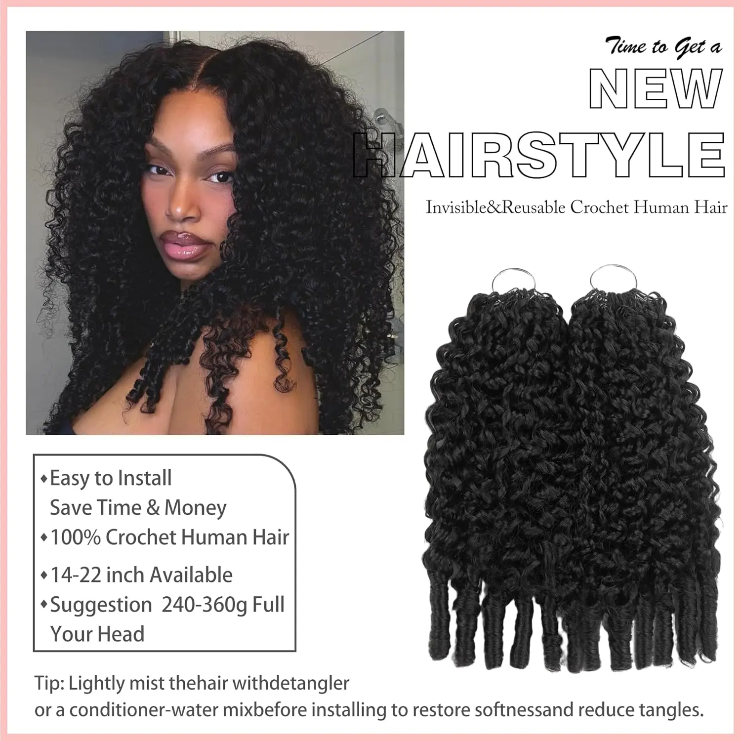 Maintenance:Simply mist the hair with a detangling spray or a conditioner-and-water mix before installation to restore softness, reduce tangling, and make styling smoother.With regular moisture care, the hair can be reused multiple times.