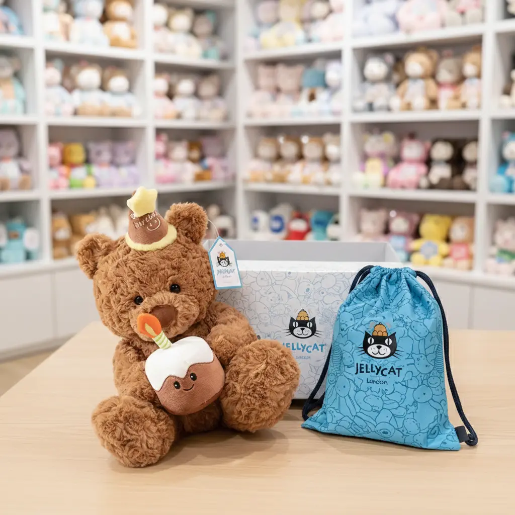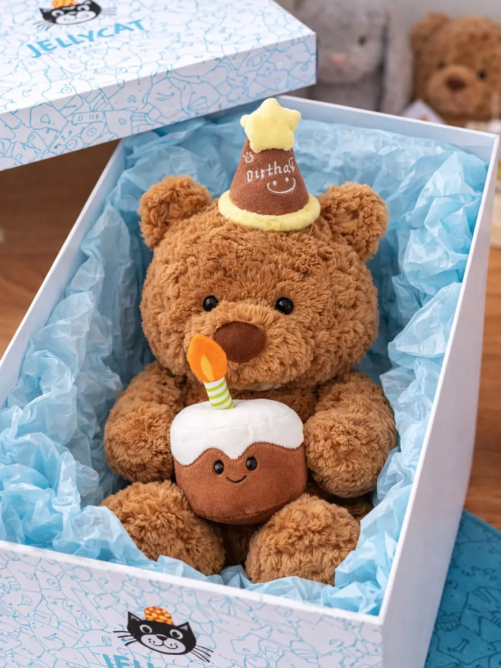 ✨ Jellycat Style Birthday Bear Plush 40cm is a delightful stuffed animal, ideal for kids and adults. This adorable bear comes with a cake and party hat, making it a perfect party accessory. Its soft, cuddly feel ensures comfort and joy. Ideal for birthdays, this plush toy is a charming addition to any celebration.