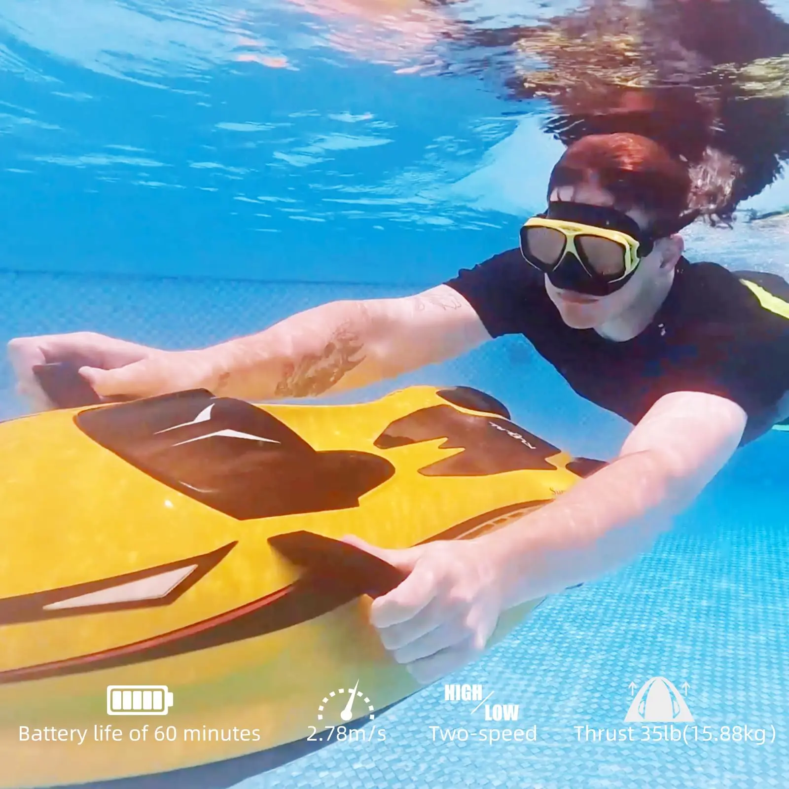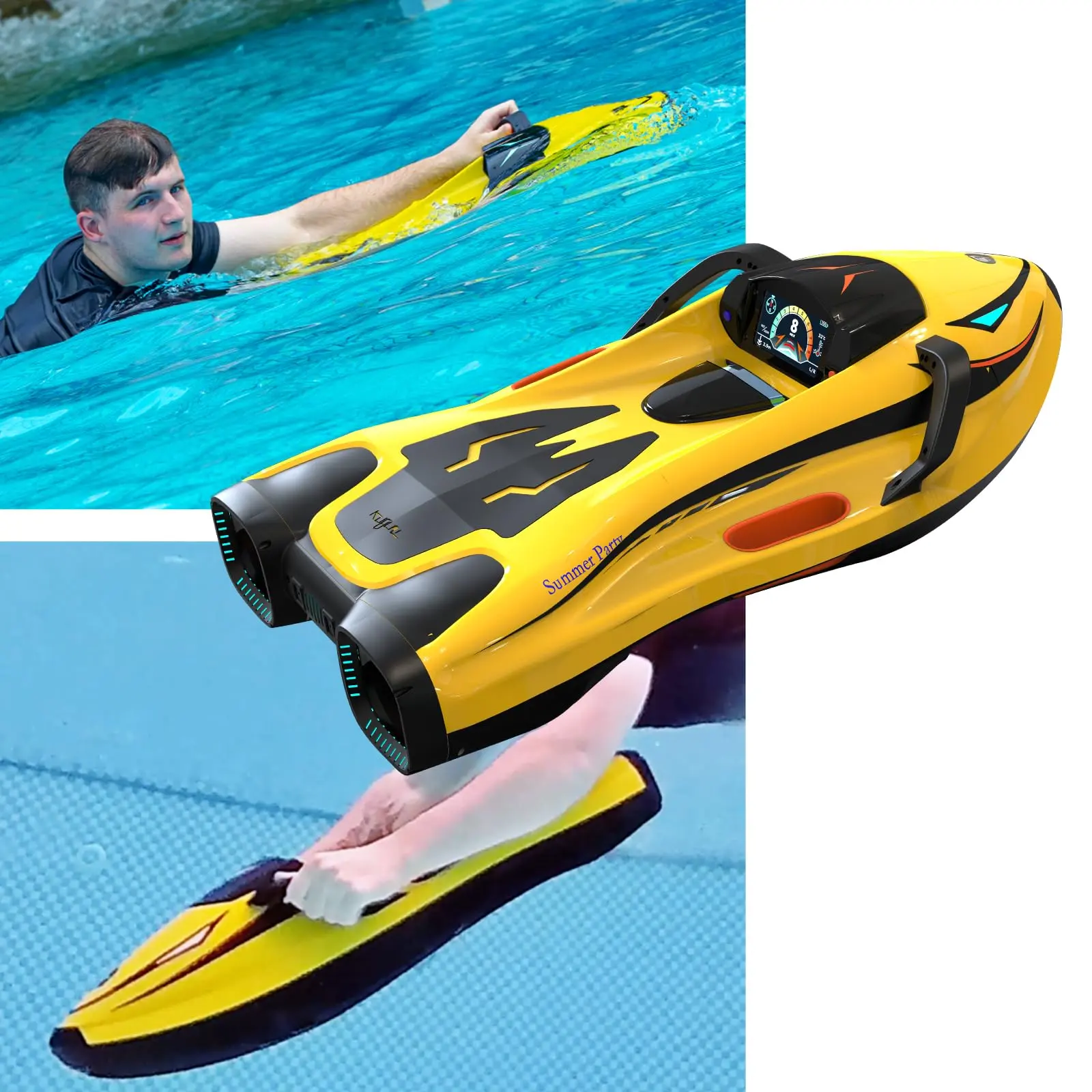 ·PROFESSIONAL UNDERWATER SCOOTER FOR ADULTS: Designed for serious divers, this adult underwater scooter offers precise control and ergonomic handling. Perfect for pool diving, snorkeling, and open water adventures, it combines safety, stability, and performance for every underwater experience.