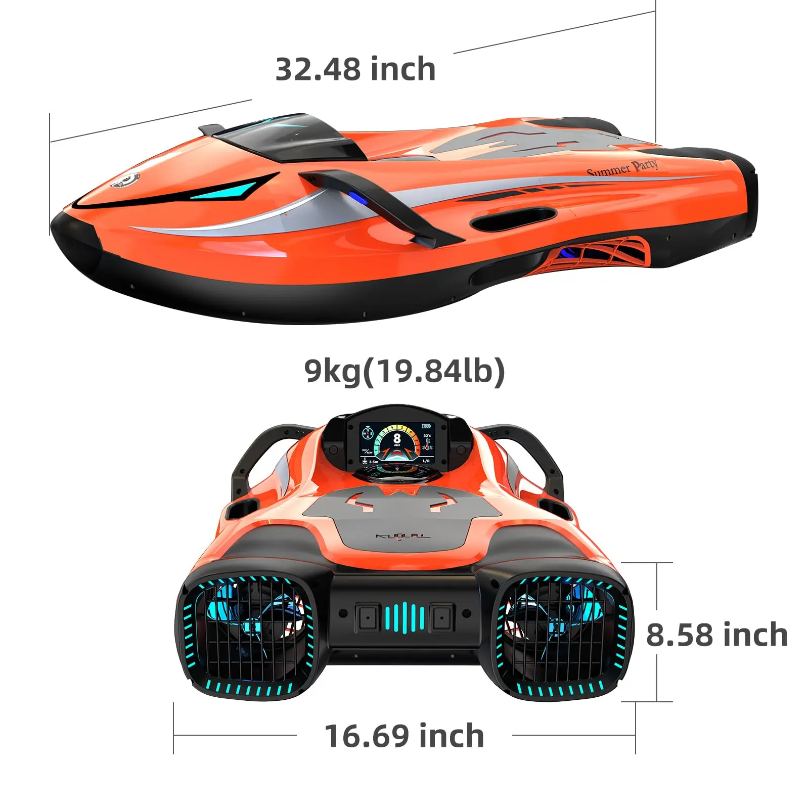·FULL-COLOR 4.3" MULTI-FUNCTION DISPLAY: Monitor speed, depth, battery, water temperature, and compass direction on the multi-function display. As a diving scooter with advanced sensors, it ensures you stay informed and confident during every dive.