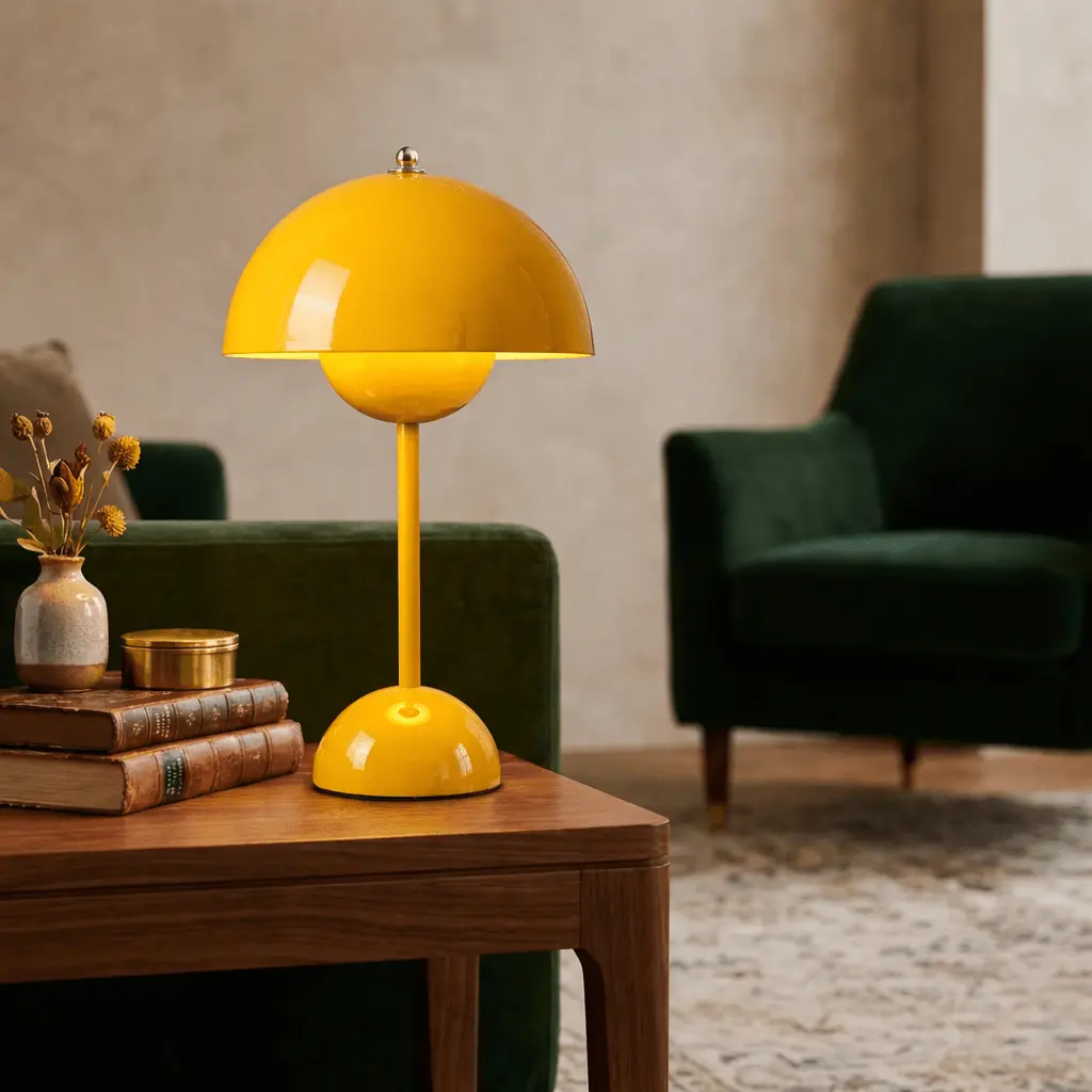 Bring a touch of iconic mid century modern design to your home with our stylish Mushroom Table Lamp. This sleek and functional piece is perfect for creating a cozy atmosphere in your bedroom, living room, or office.