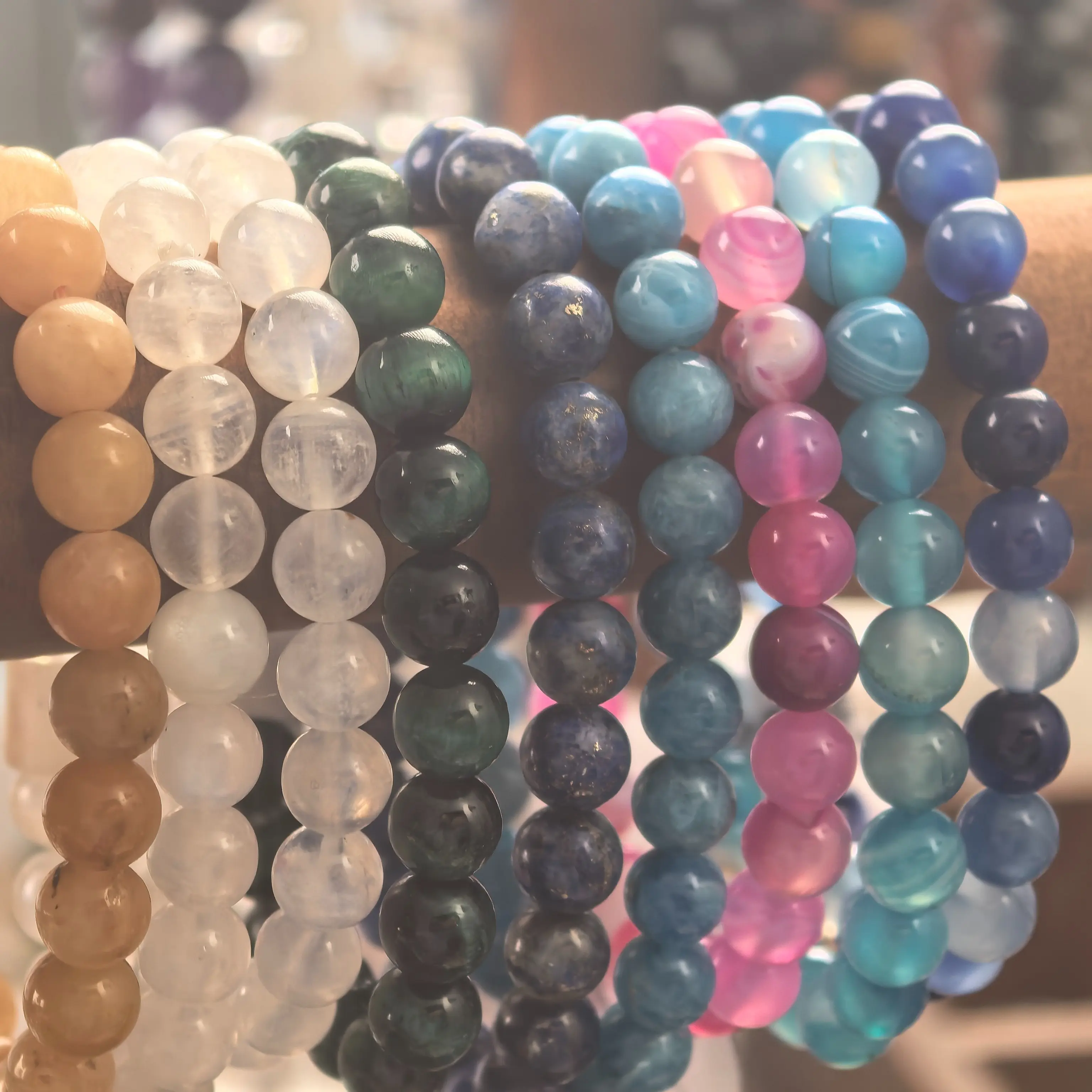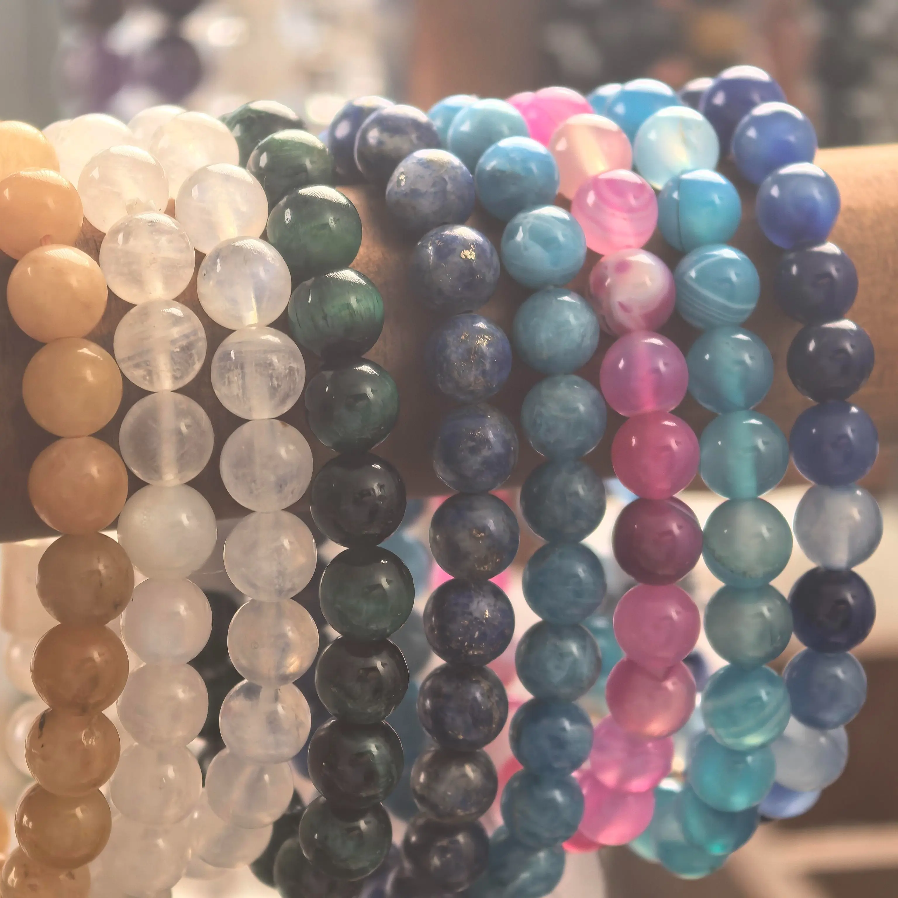 Each stone carries its own steady presence. Depending on the selection, bracelets may support: