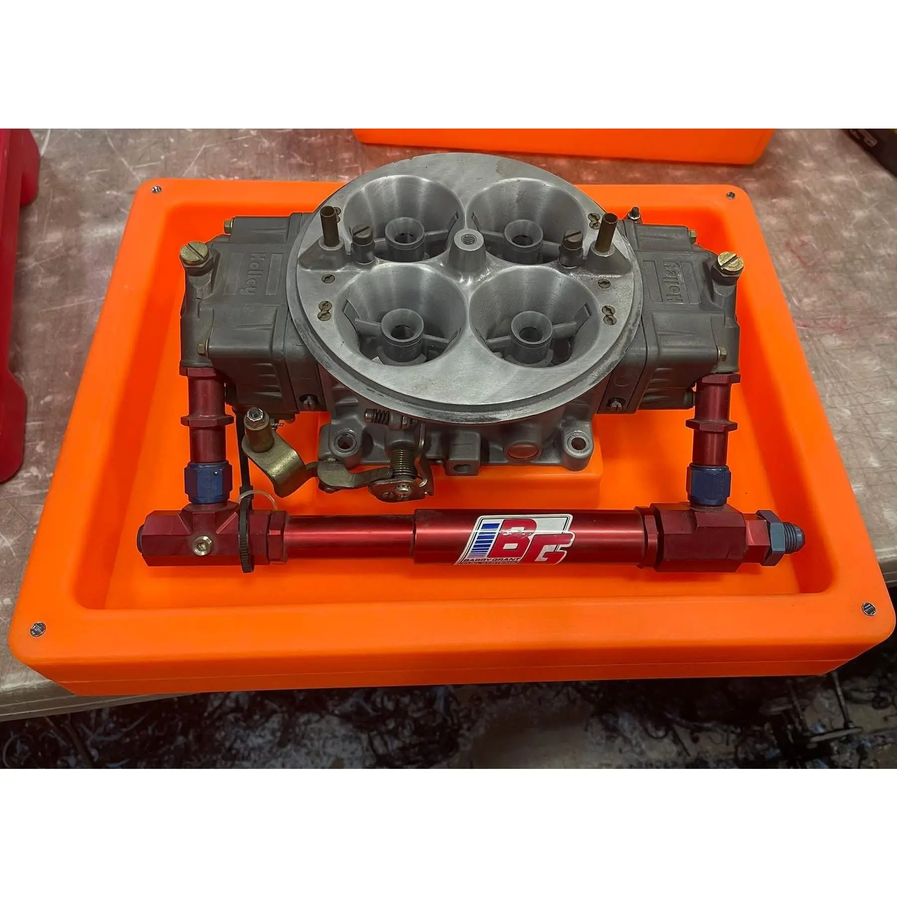 Carb storage box will work with 2 barrel, 4 barrel, and 4500 style carbs allows you to keep your fuel log installed.