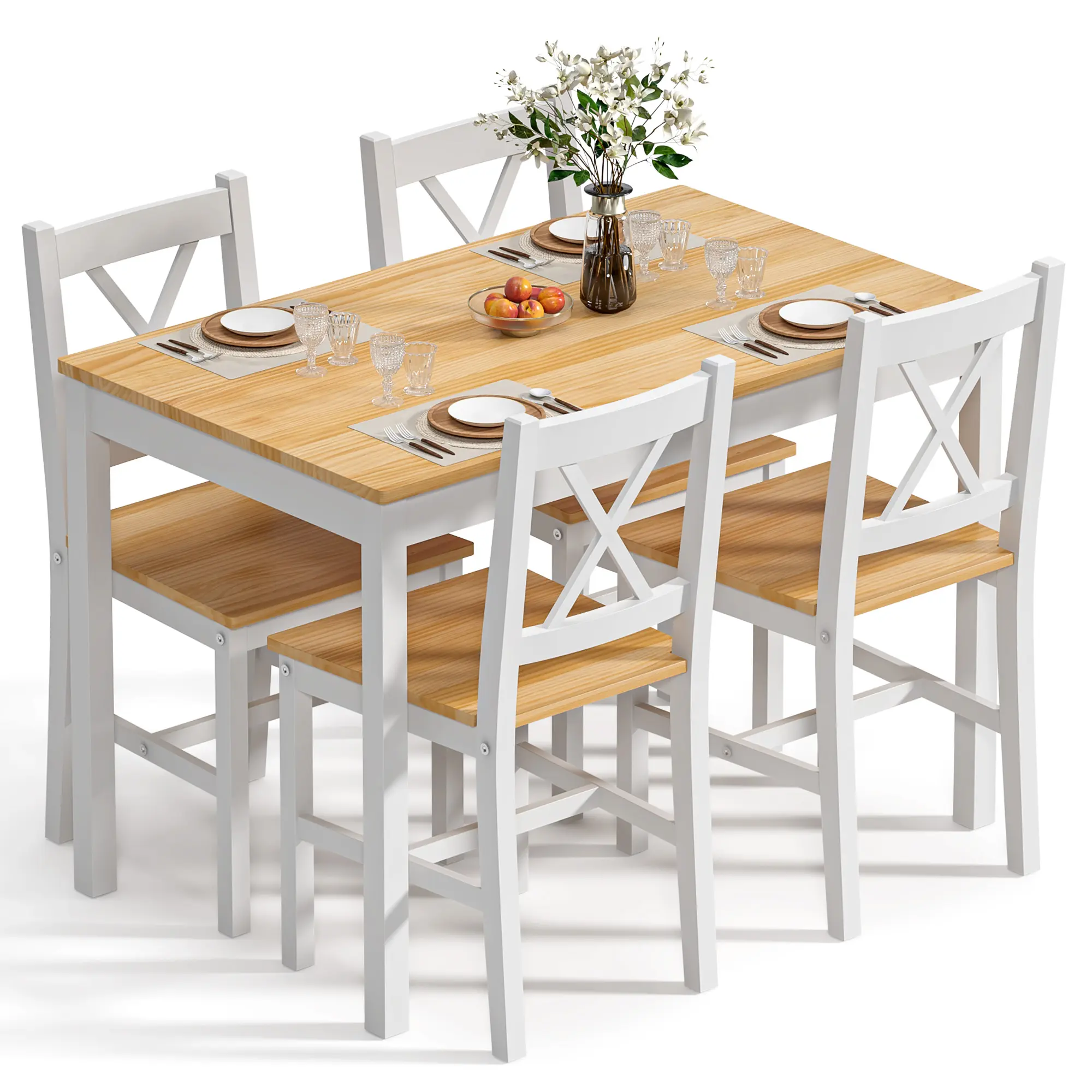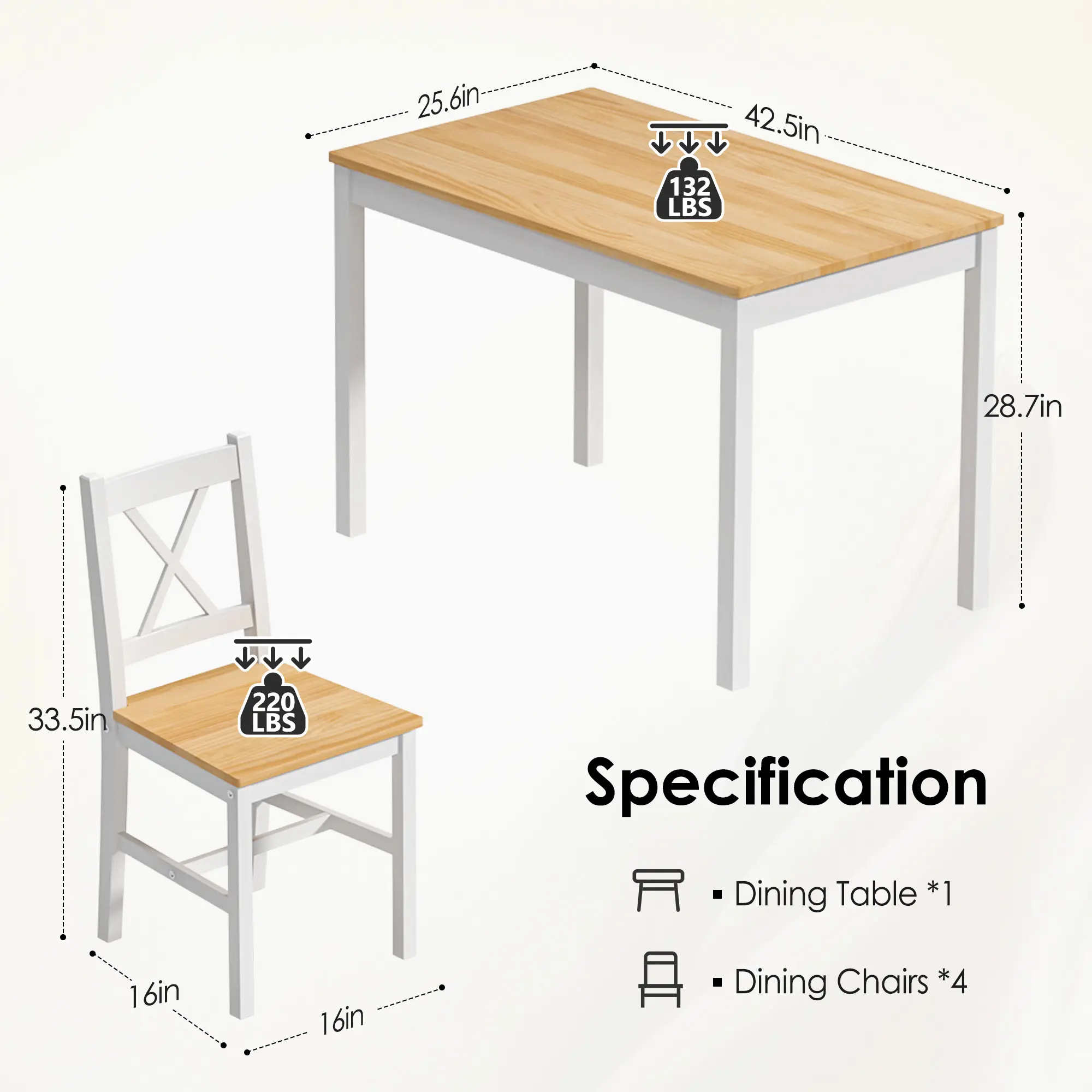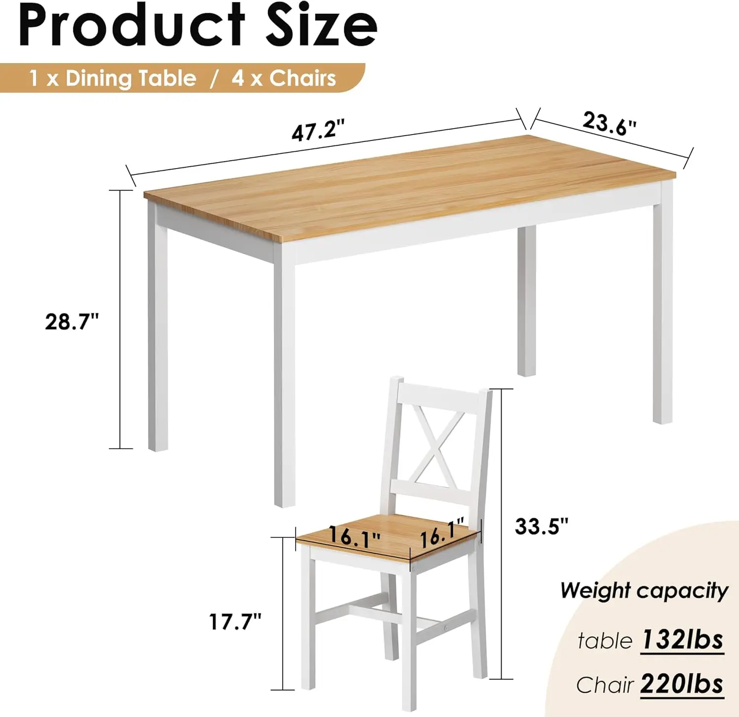 Soges 5-Piece Solid Wood Dining Table Set with 4 Chairs, Farmhouse Kitchen Table Set for Small Space, Easy Assembly Desk for Kitchen, Dining Room, or Restaurant