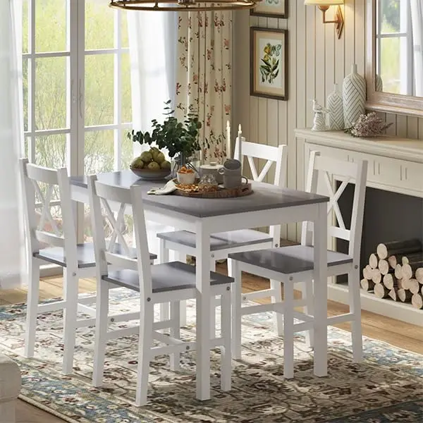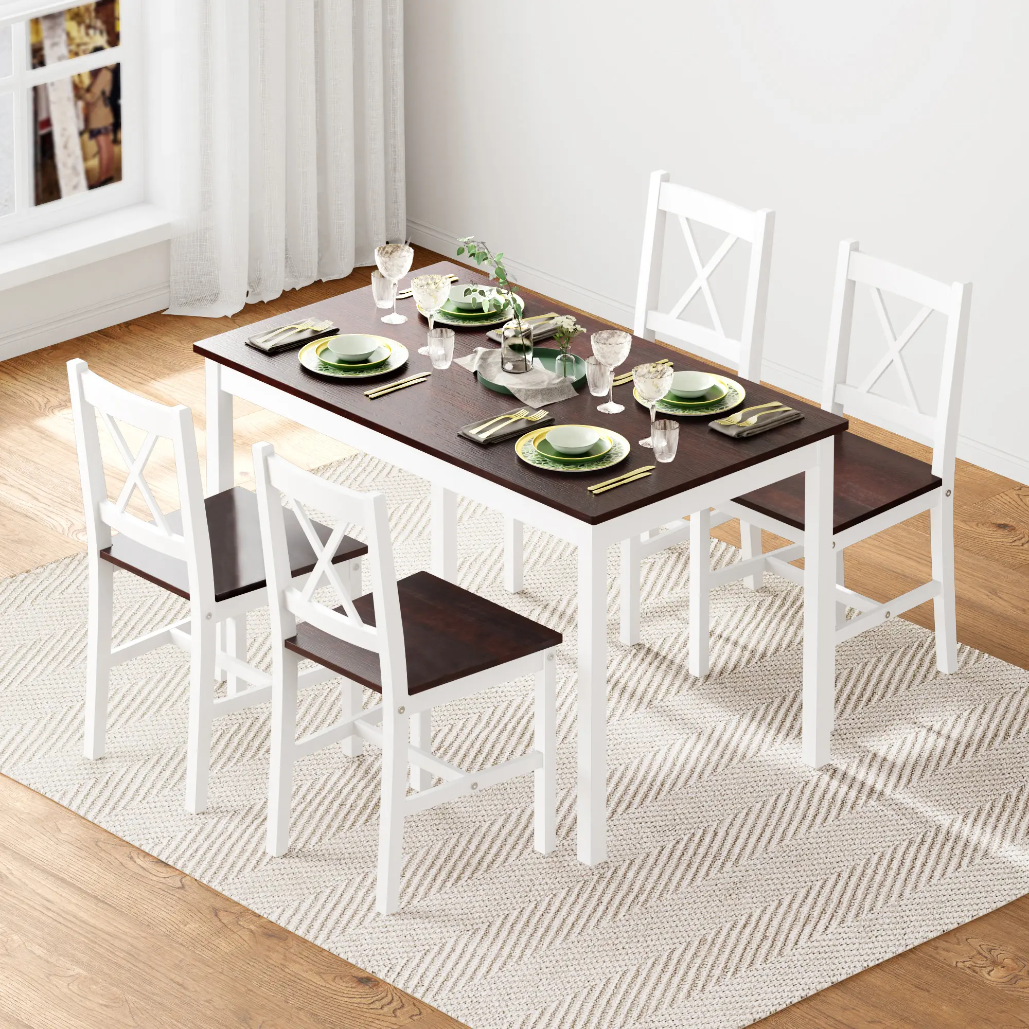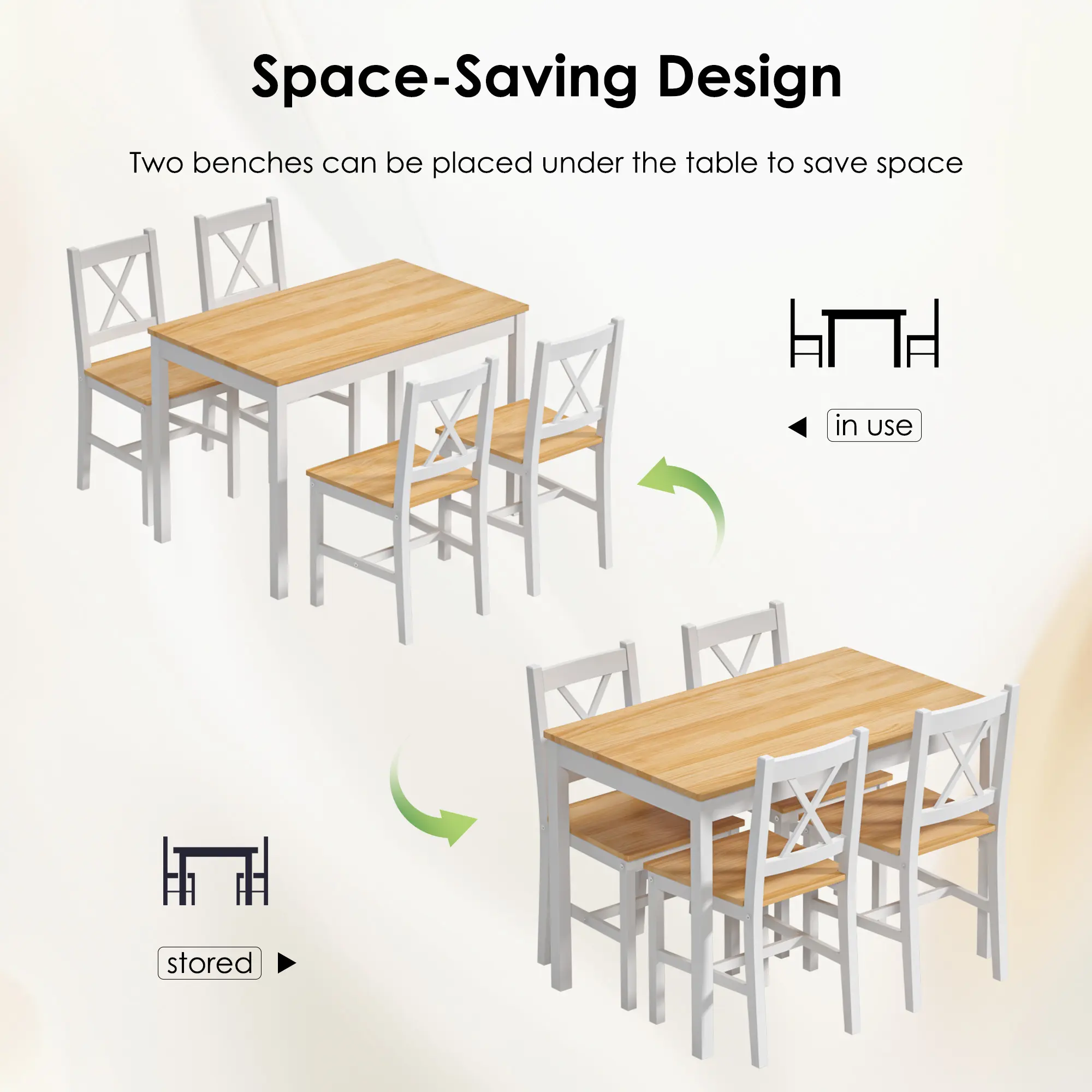 Soges 5-Piece Solid Wood Dining Table Set with 4 Chairs, Farmhouse Kitchen Table Set for Small Space, Easy Assembly Desk for Kitchen, Dining Room, or Restaurant