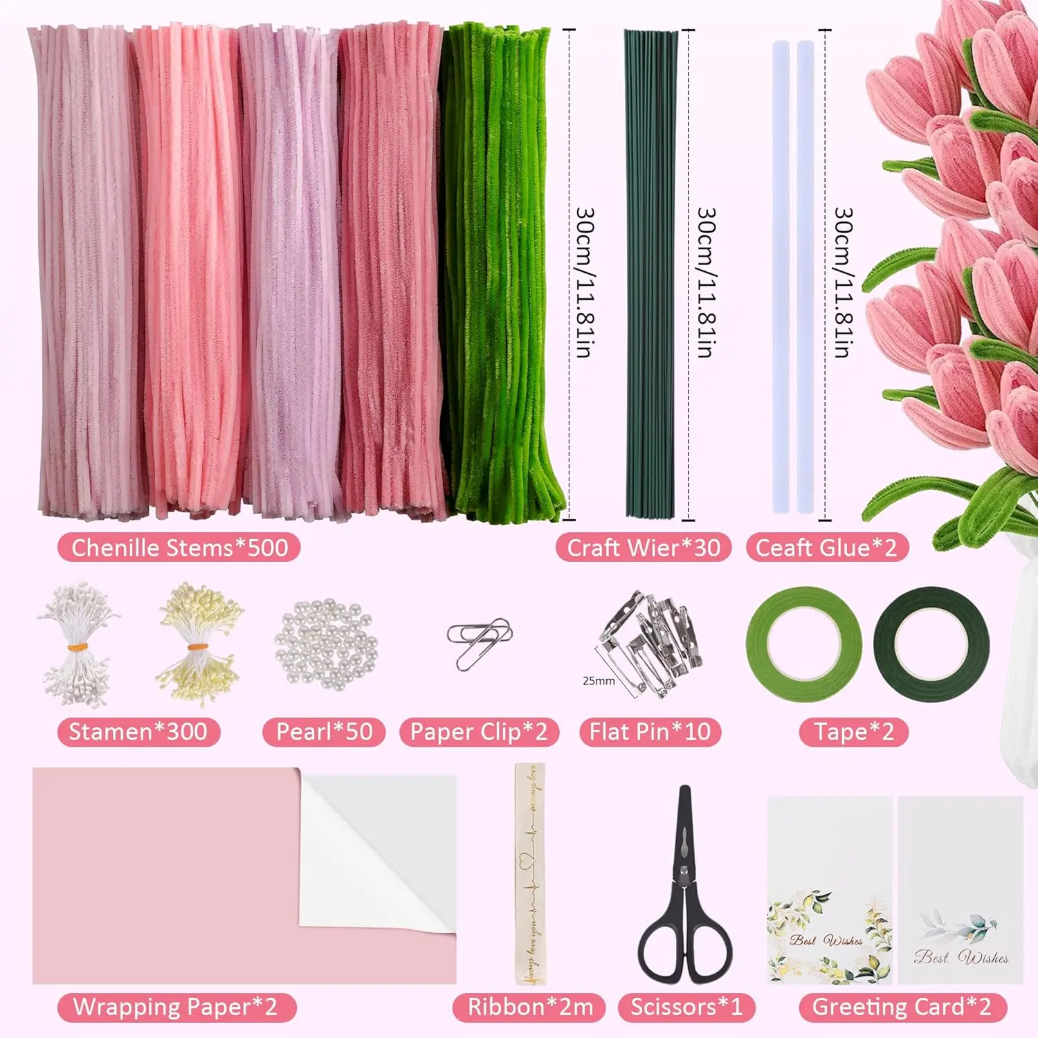 ·Long-Lasting, Fade-Resistant Flowers: Craft stunning flowers that won’t fade over time, unlike real blooms. The pipe cleaner flowers you create will stay vibrant, making them ideal for everlasting bouquets(like tulip, rose, sunflower, carnatios, lilies, daisies, lavender), decor, and gifts