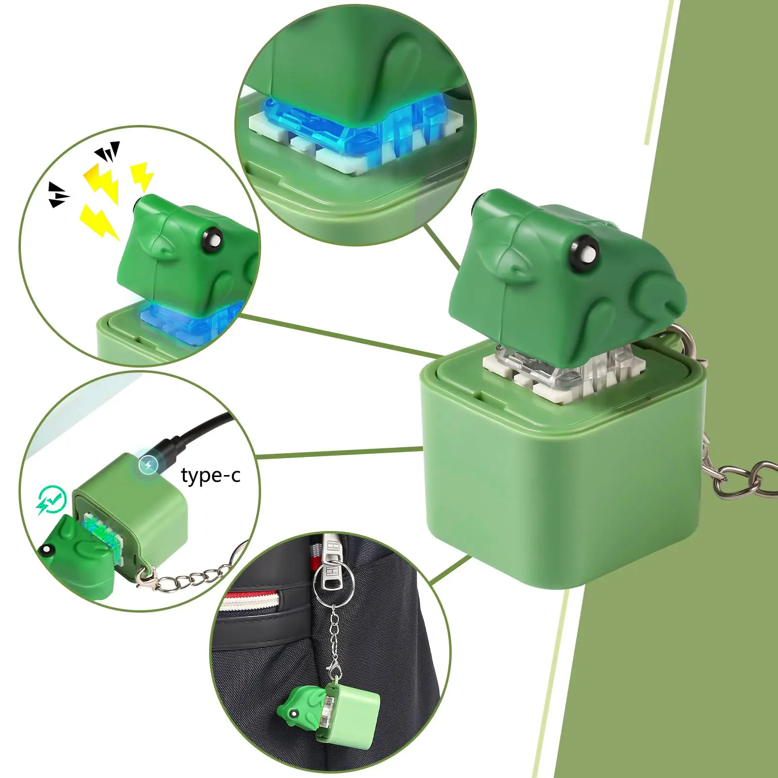 Lizard, Frog & Coquí Button Keychain – Rechargeable LED Light, Color-Changing Sound Toy | Valentine’s Gift for Kids & Adults