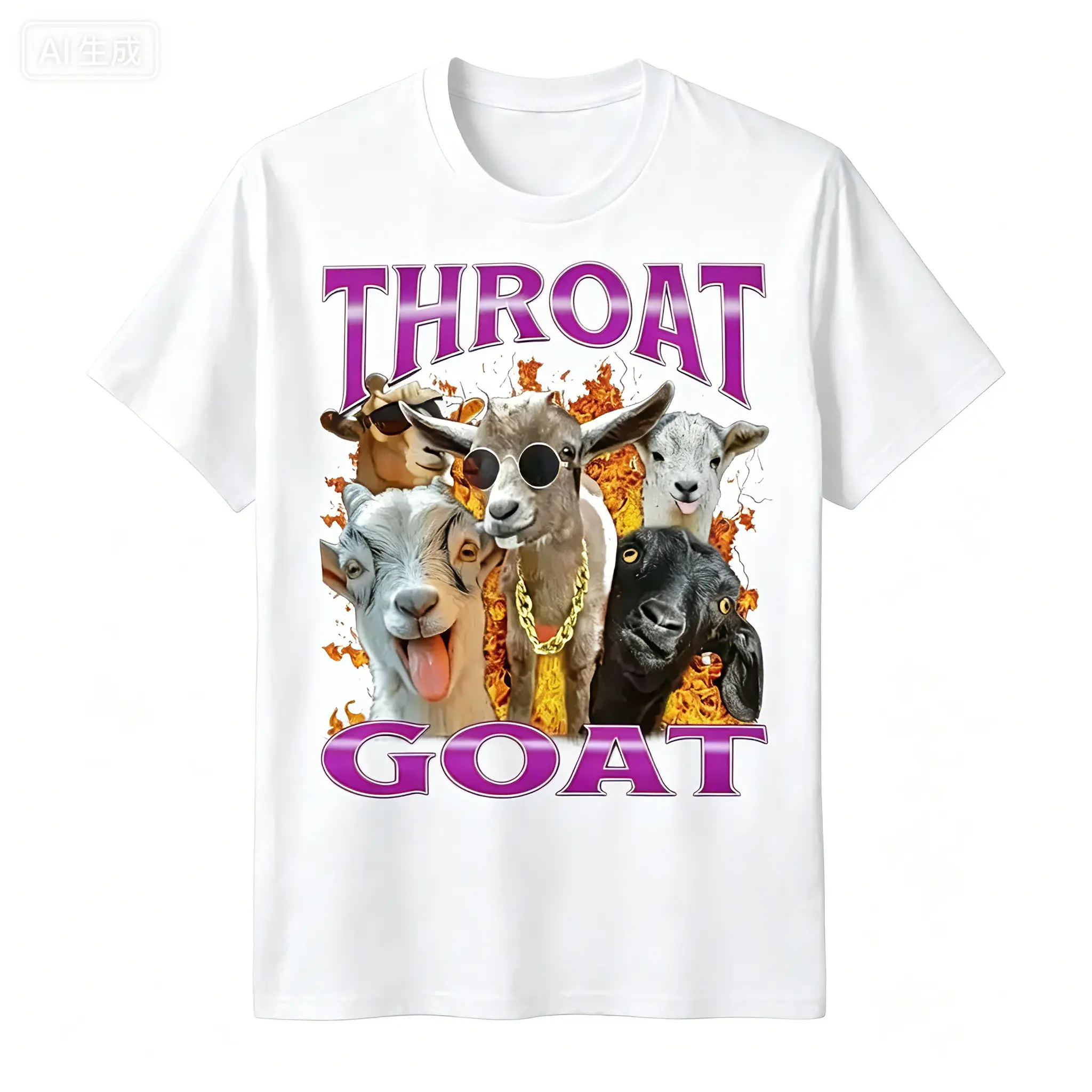 [100% Cotton] Funny Trendy Goat Graphic T Shirt Throat Goat Humor Meme Tee For Men Women Friends Gift Idea For Birthday Party Casual Wear Playful Bold Vibe Comfortable Everyday Outfit Streetwear Style Fun Conversation Starter, Unisex Casual Graphic