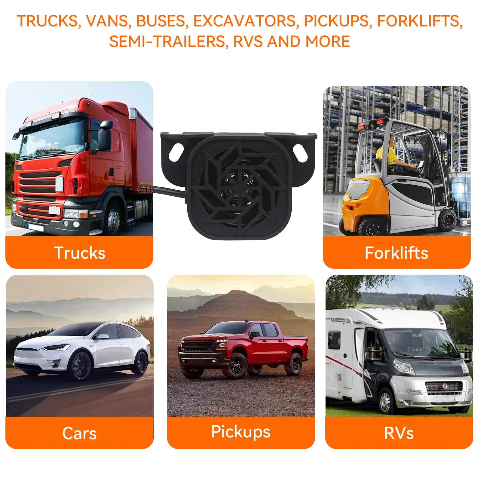 ·Durable & Secure: The ultra-high-performance reversing alarm uses high-quality nylon material + epoxy resin embedded in a waterproof shell with new electronic components. It is highly lightweight, wear-resistant, dust-proof, non-fading, impact-resistant, high-temperature, and corrosion-resistant. It complies with CE certification and IP67 certification.