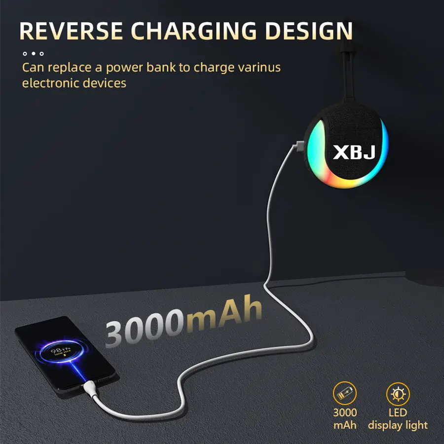 Portable Bluetooth 5.3 Audio Speaker with TF Card Input, 3000 mAh Battery, Surround-Style Colored Lights, Climbing Hook & Mini Compass, Ideal for Outdoor Camping & Hiking - Smartphone, Multifunctional, Connection
