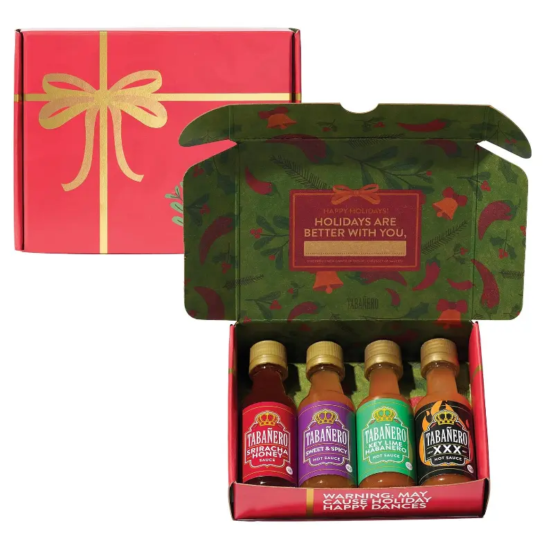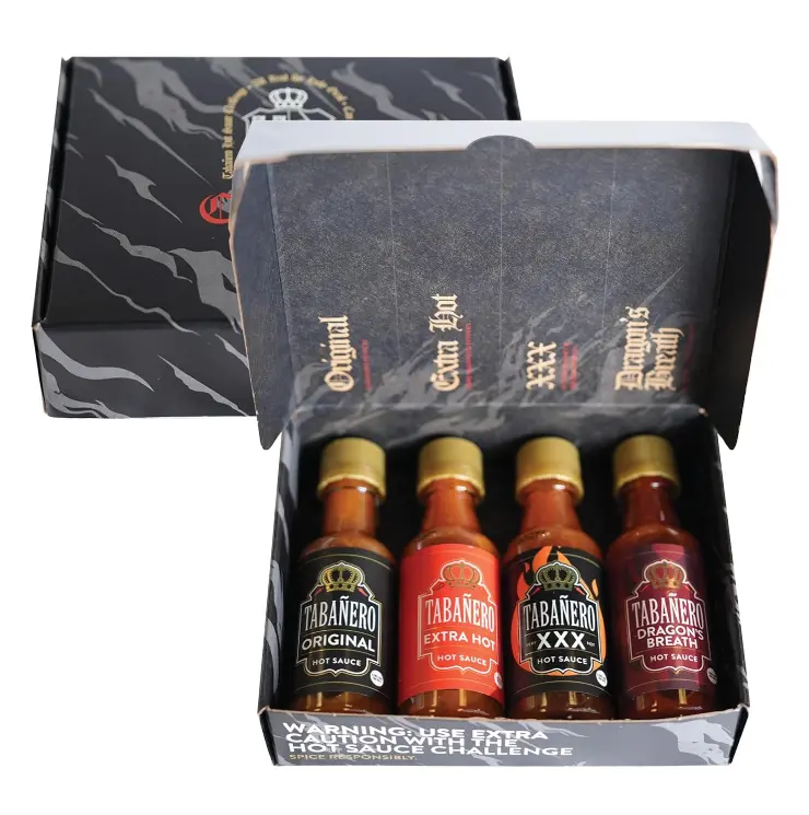 ·HOTTEST HOT SAUCE Gift your favorite hot sauce lovers with Tabanero's Mini Hot Sauce Challenge Box! Our hot sauces are worthy of being both the “in” and “on” sauce, an ingredient and a recipe all on its own. With unique flavors that add delicious punch, our hot sauces are fit for all the kings and queens out there.