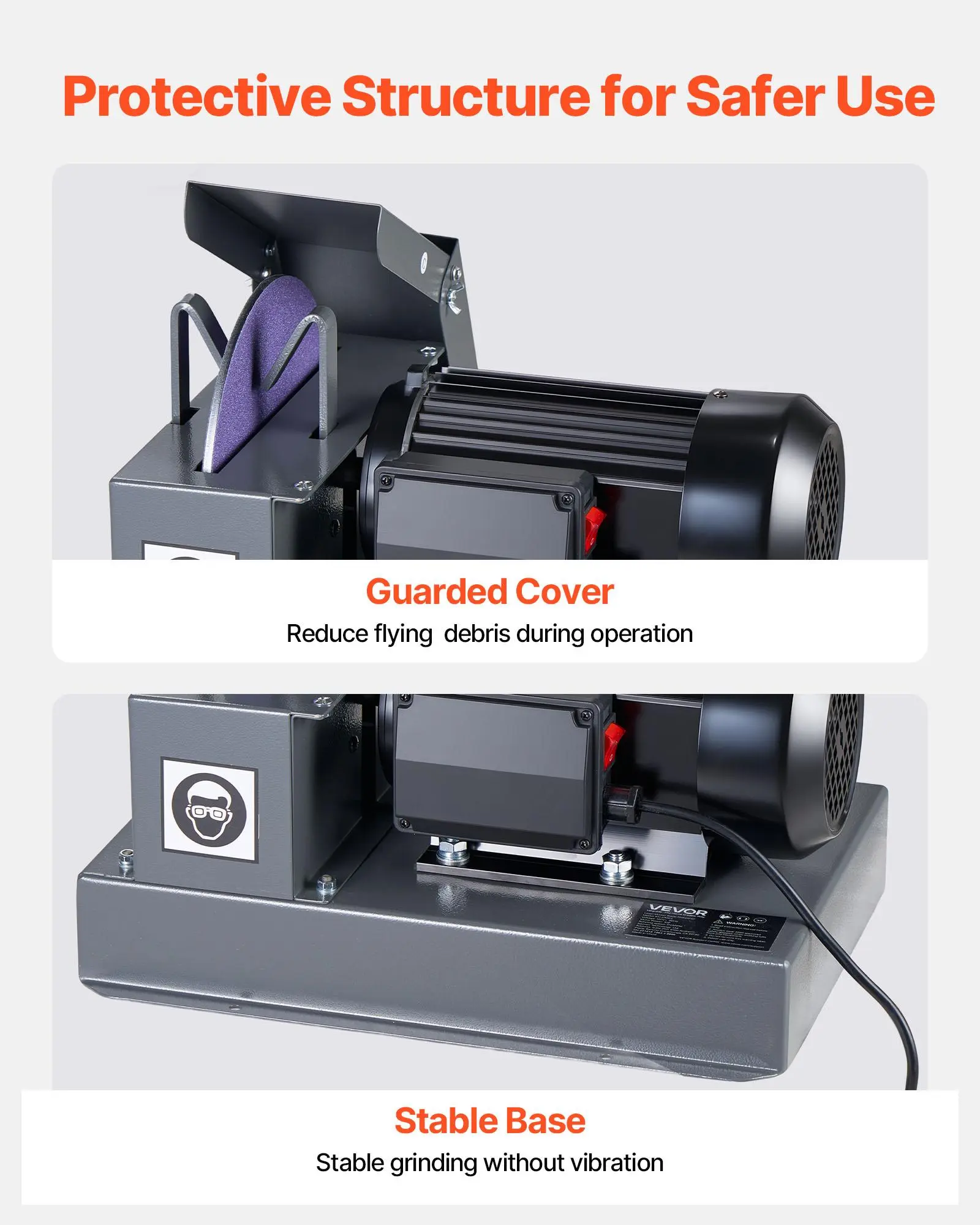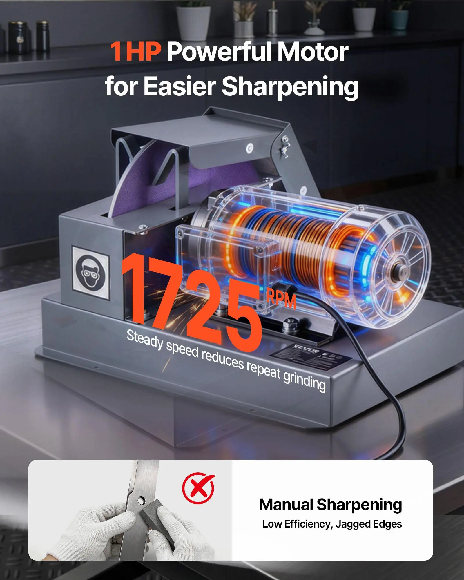 Efficient, Powerful Sharpening: Powered by a 1HP high-performance motor running at 1725 RPM, this VEVOR lawn mower blade sharpener quickly restores dull and worn blades for sharper, more efficient and precise cuts