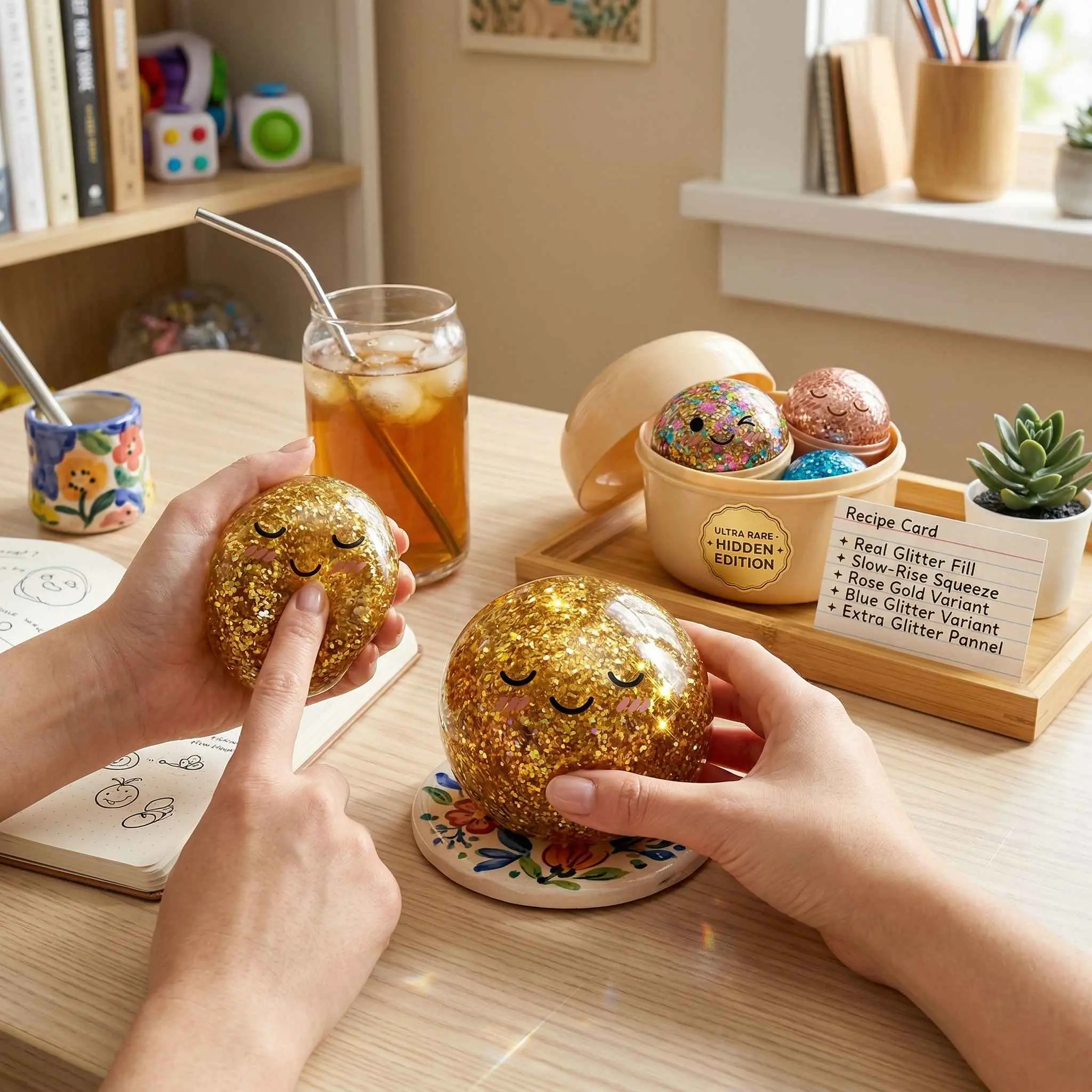 ✨ Discover the Viral Dumpling Squishy ULTRA RARE Iridescent Glitter Hidden Edition! This rare item sells out fast. If you know, you know. It's the pink glitter version, seen on TikTok. Real glitter moves with every squeeze. Crystal-clear TPR outer shell. Slow-rising texture. Heavier and more satisfying than regular squishies. ~200g of ultra-soft, skin-friendly material. Non-sticky, washable, and durable. 500M+ TikTok views. The #1 most-hunted variant. Unboxing videos go viral. Collectors are losing their minds.
