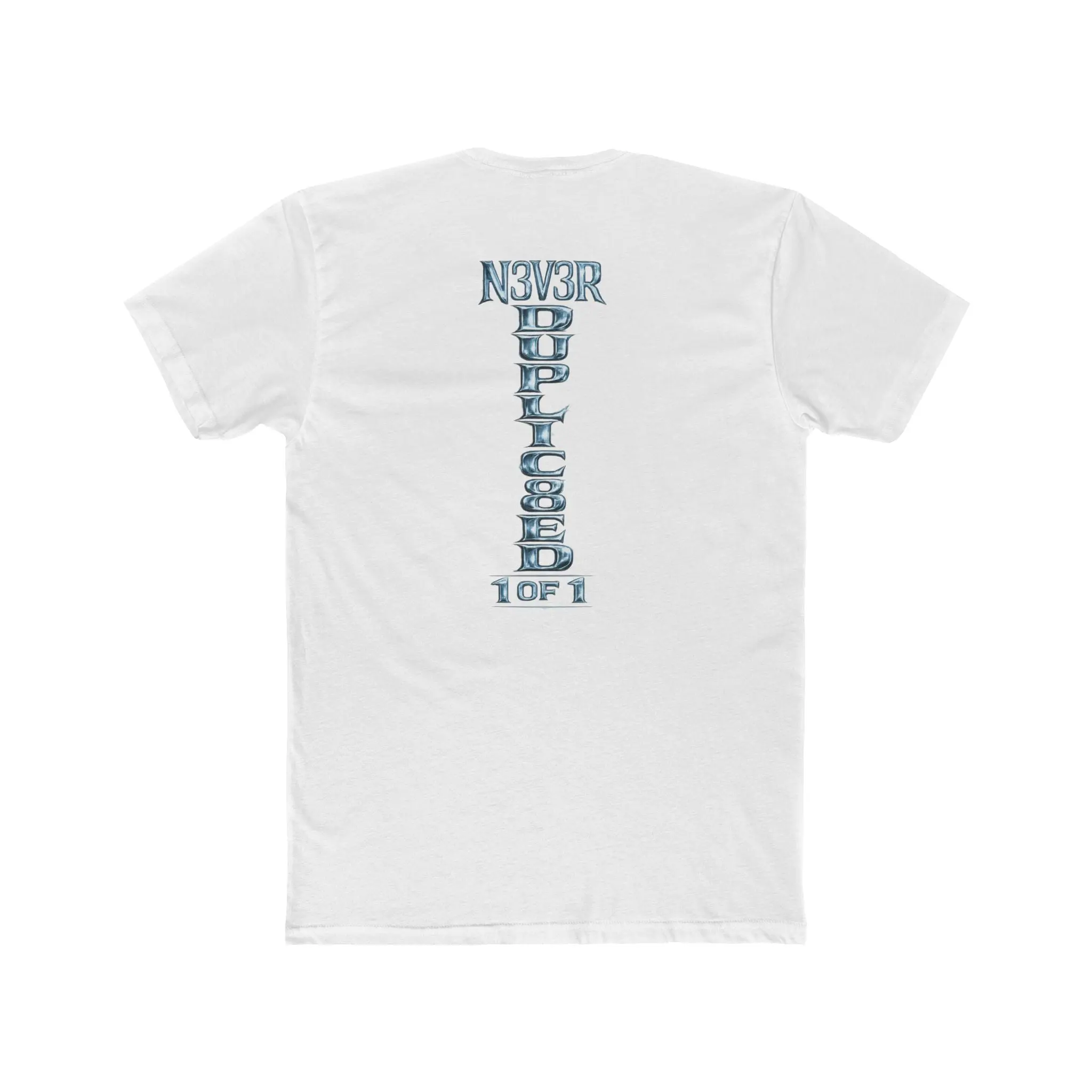 This lightweight cotton crew tee carries an expressive, street-art vibe — a worn-in white canvas with dripping, graffiti-style lettering and a subtle crown accent on the chest, plus a vertical typographic stripe down the back. The shirt feels lived in from the first wear: breathable, soft, and cut in a classic crew silhouette that layers easily under jackets or stands alone. It’s made to be part of everyday rotation for someone who values bold visual statements and understated comfort. Wear it to late-night meetups, gallery drops, or city walks — it reads like a personal emblem, not just a logo.