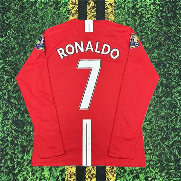 2007 2008 Home Retro Red No.7 Ronaldo Long Sleeve Soccer Jersey