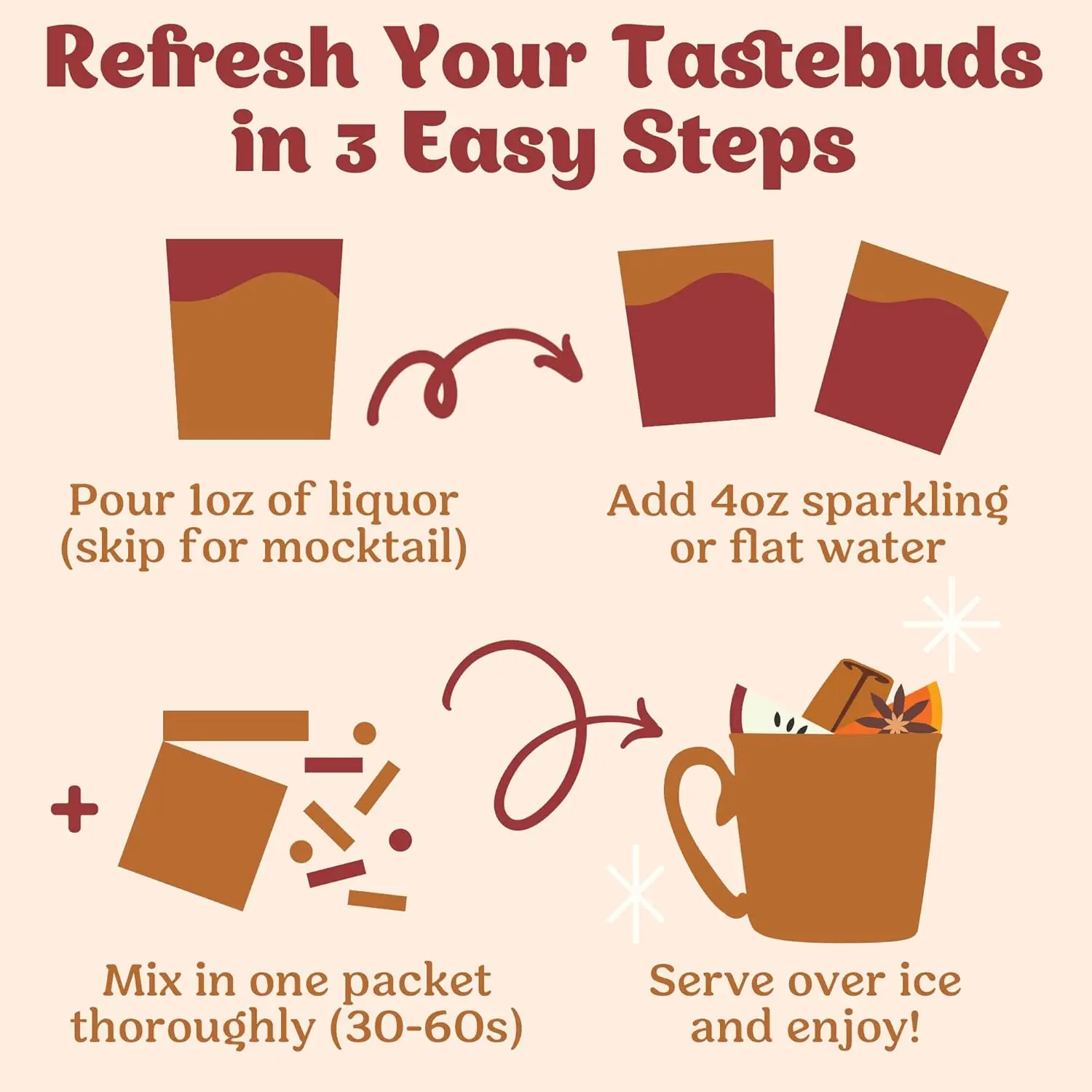 ·Delicious Cocktails Anywhere You Go - Our cocktail mixers come in pre-measured individual packets. You can enjoy a cocktail whenever and wherever you want. Have a sip watching a game, camping, or just as a pick-me-up after work.