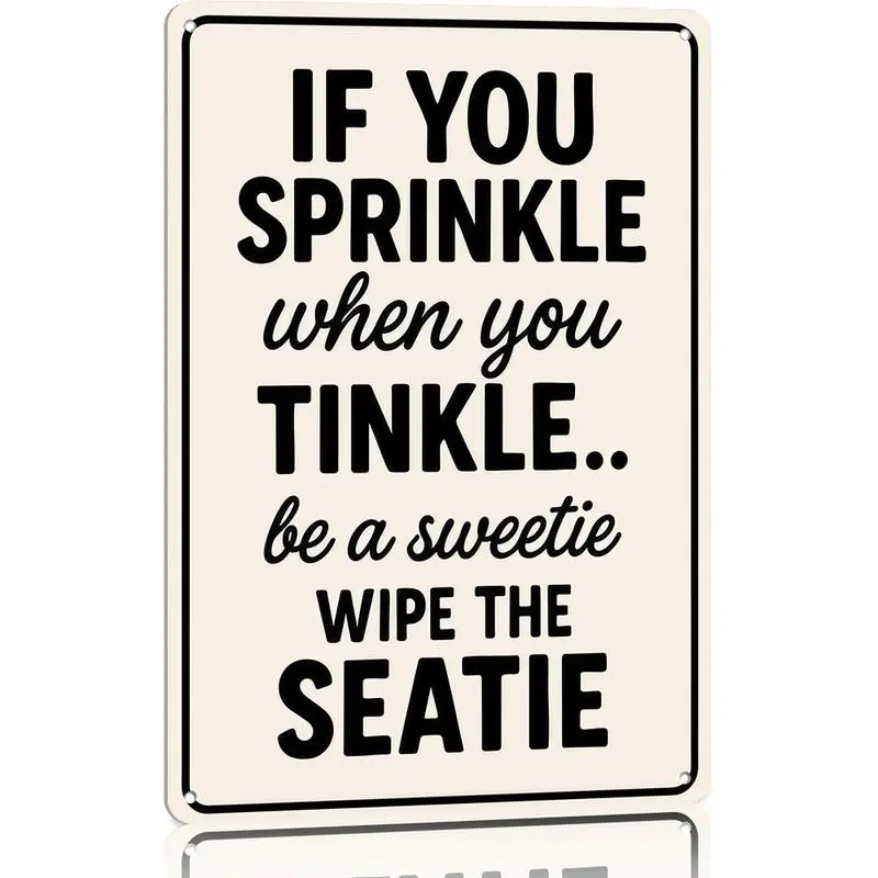 2D Flat Funny Bathroom Sign - 8x12 Inch Aluminum Restroom Wall Decor, 'If You Sprinkle When You Tinkle Be A Sweetie Wipe The Seatie' Humorous Metal Plaque, Weatherproof & Durable Sign for Home, Guest Bath, Office, Housewarming Gift for Pet & Humor Lovers