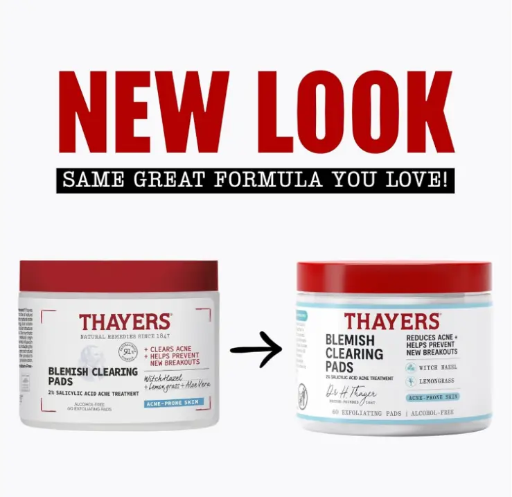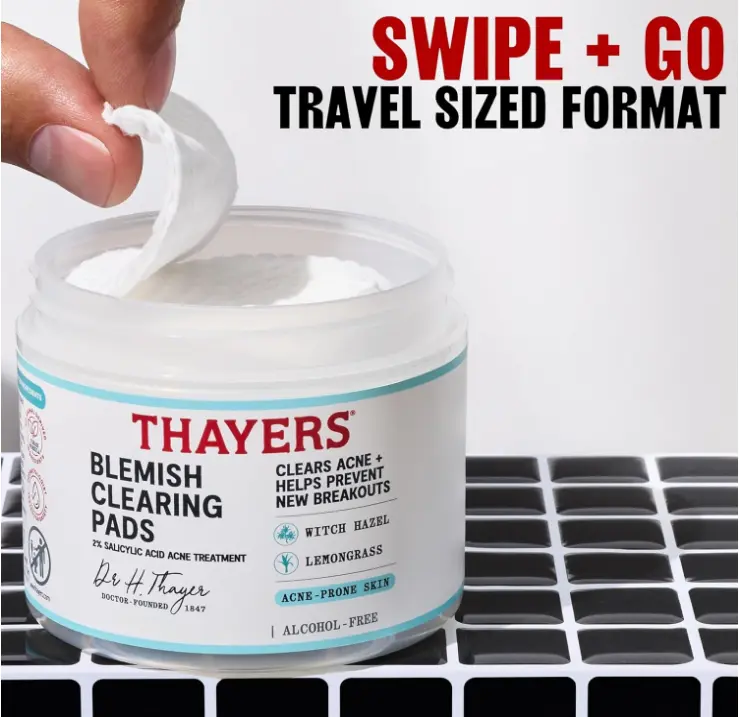 ALCOHOL-FREE BLEMISH TONER PADS FOR FACE: Thayers Alcohol-Free Blemish Toner Acne Pads clear acne blemishes, blackheads and whiteheads, while actively preventing new breakouts. Clear acne-prone skin without wrecking your skin's moisture barrier with this women’s and men’s skin care favorite.