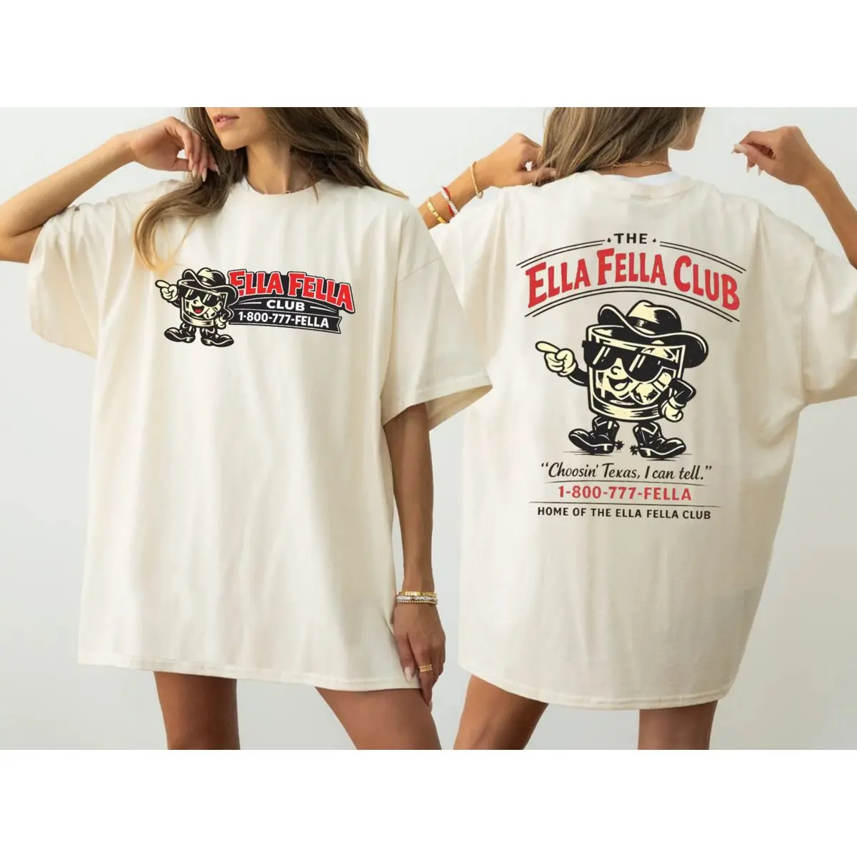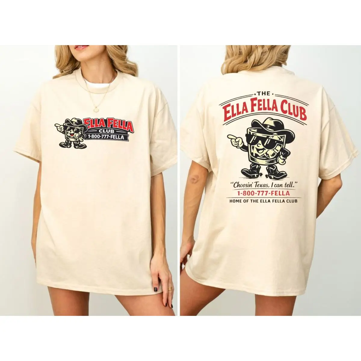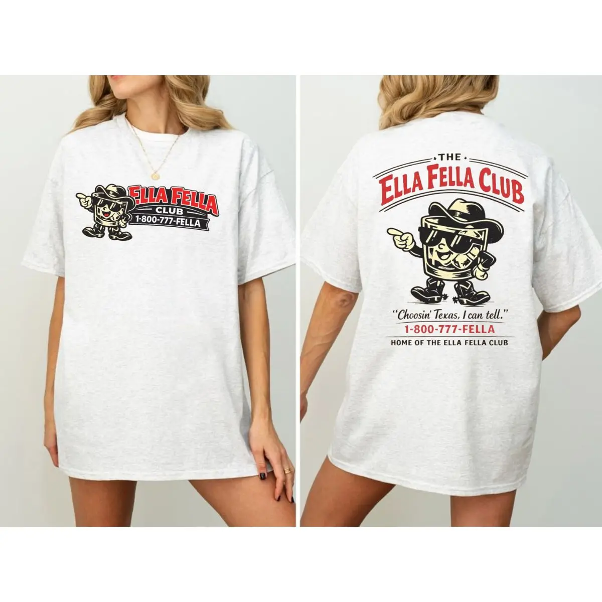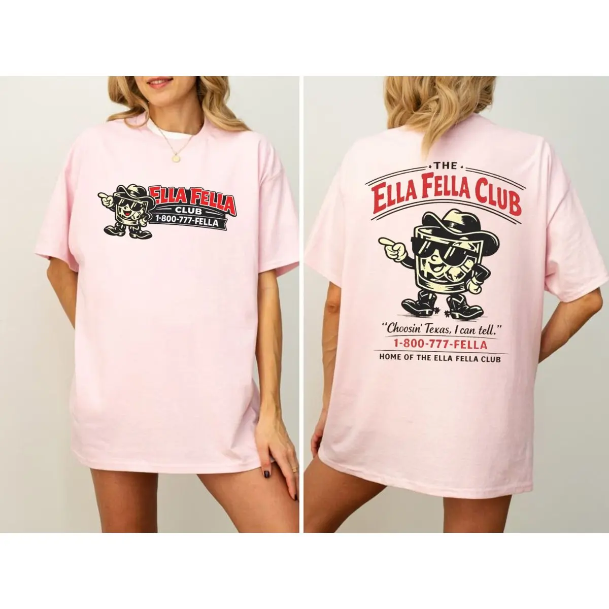 Ella fella club double sides shirt, choosin texas i can tell tee, country cowboy graphic t shirt, retro texas mascot illustration top , unisex short sleeve tee, casual clothing crewneck tee