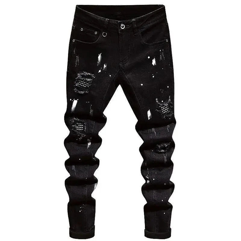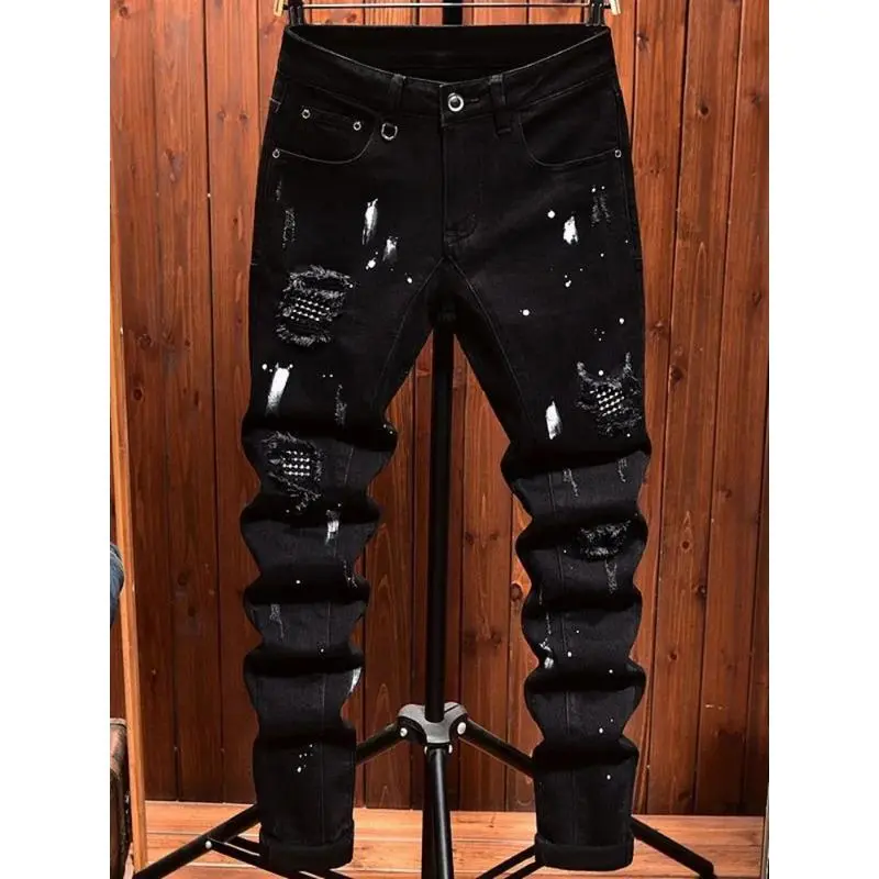 Ripped Jean 2025 Spring And Autumn Men's Casual Comfort Straight Leg High Quality Pants with Retro Ripped Black Stretch Denim Streetwear Shoe Outfit Menswear Trouser Can be used with raincoat