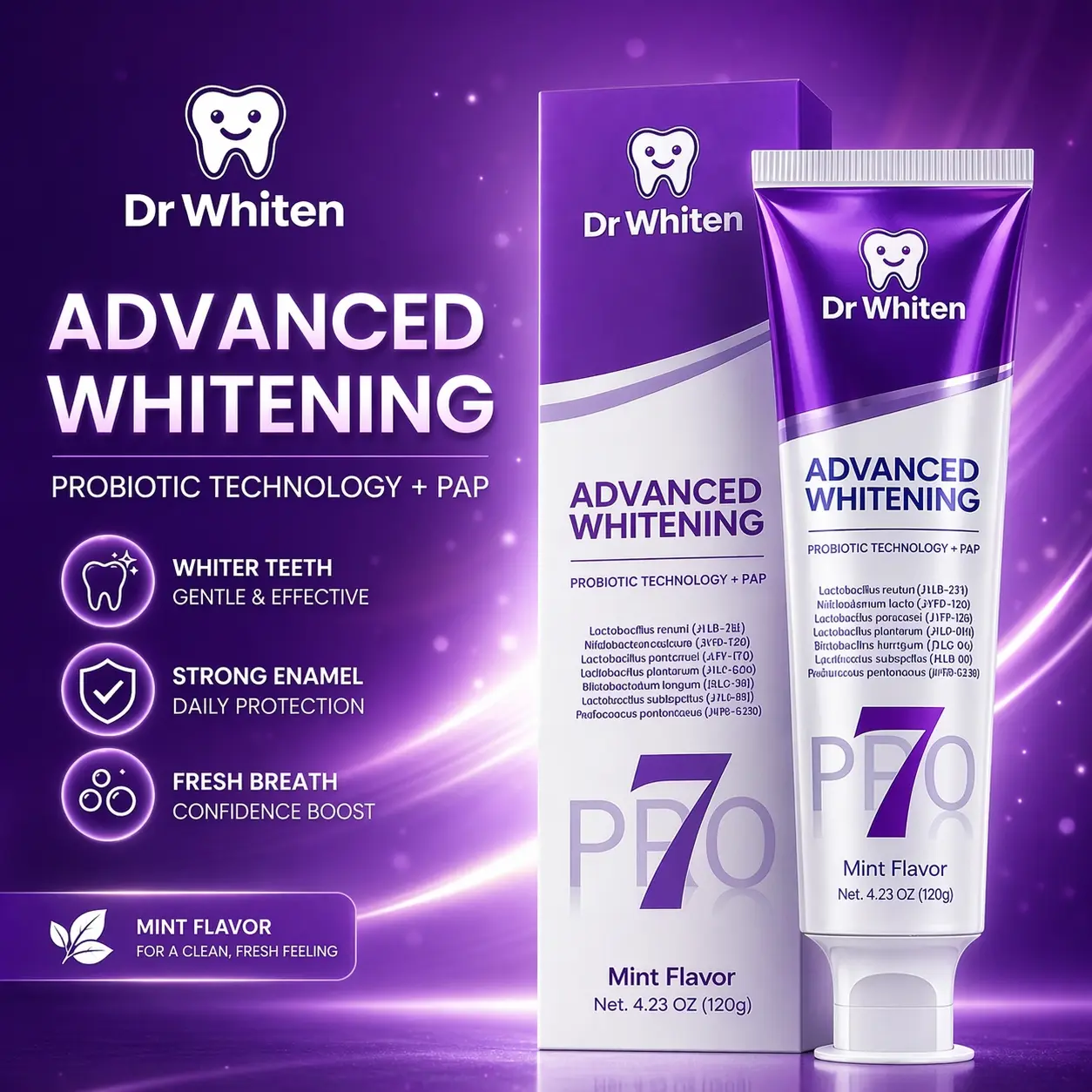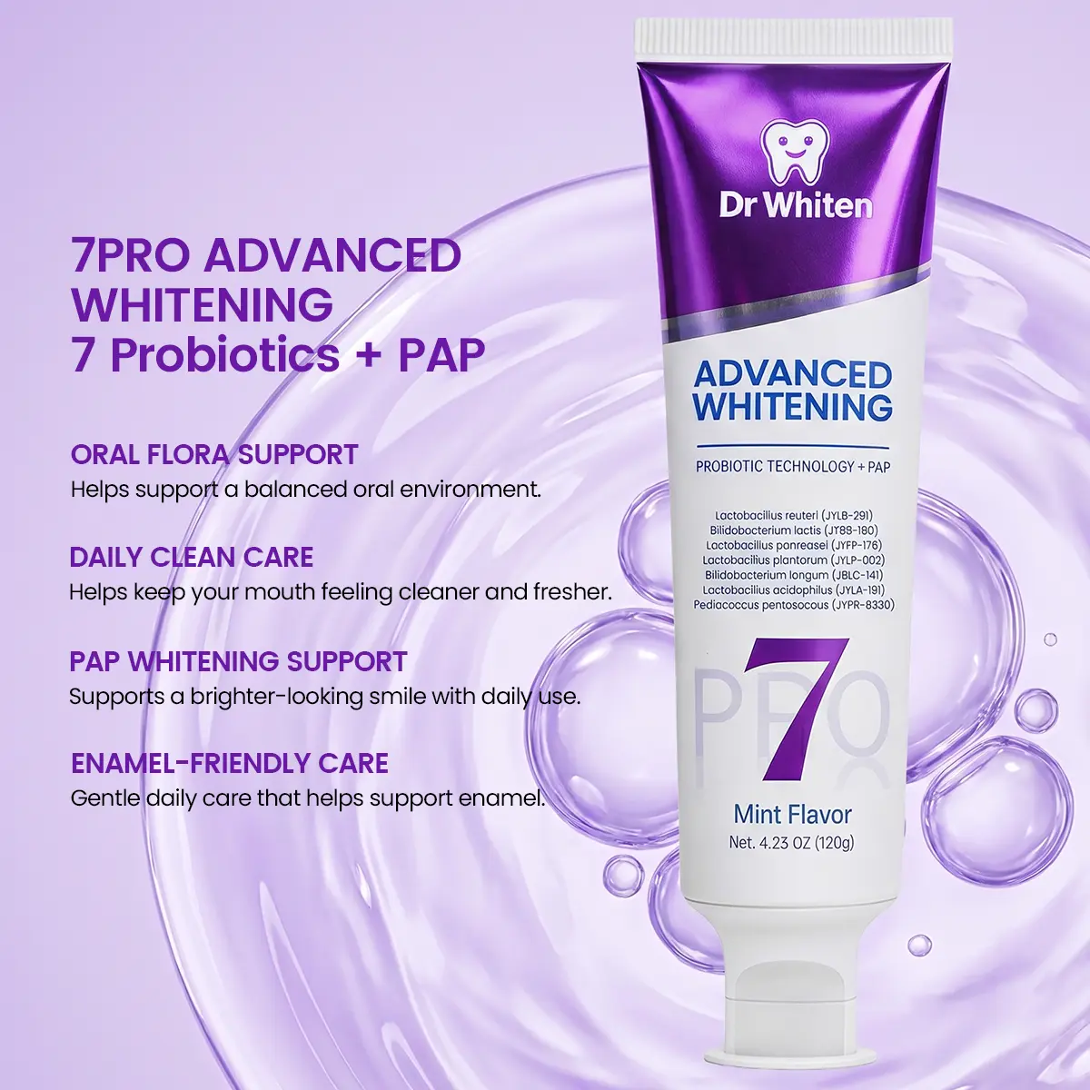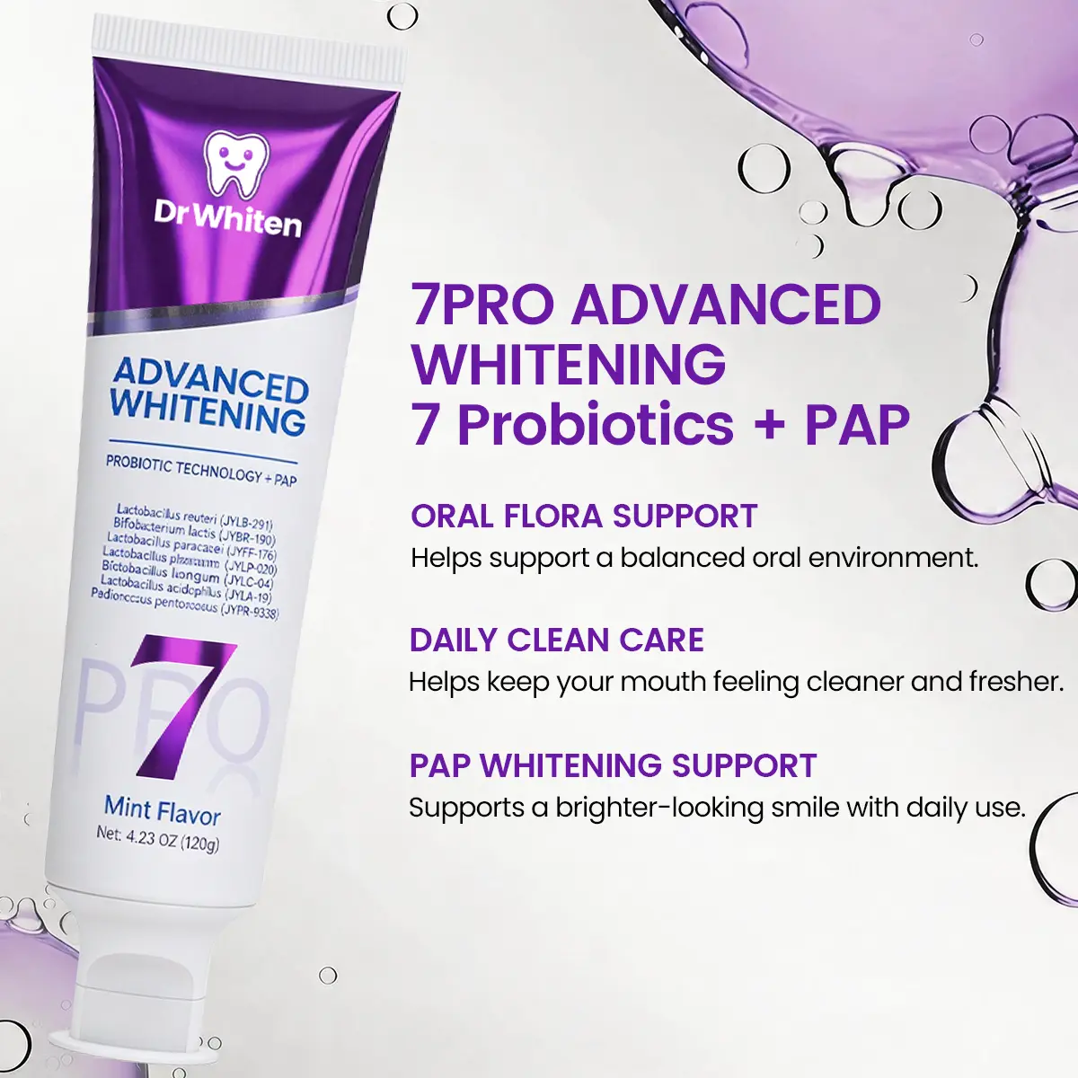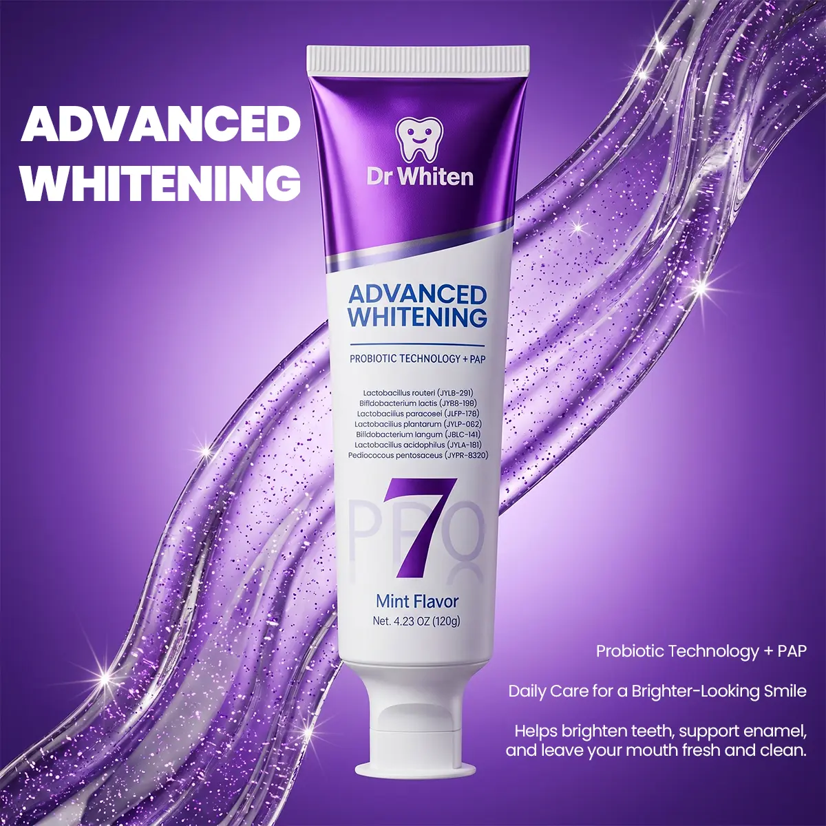 DrWhiten New 7-Pro Intensive Toothpaste, Upgraded Purple Whitening Formula, 7 Probiotics, Deep Enamel Repair, Long-Lasting Freshness
