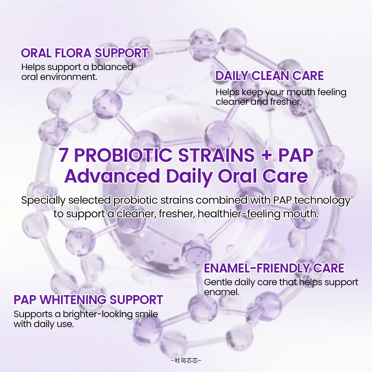 ·7 Probiotics: Contains 7 probiotics that support oral health and contribute to a healthier mouth.