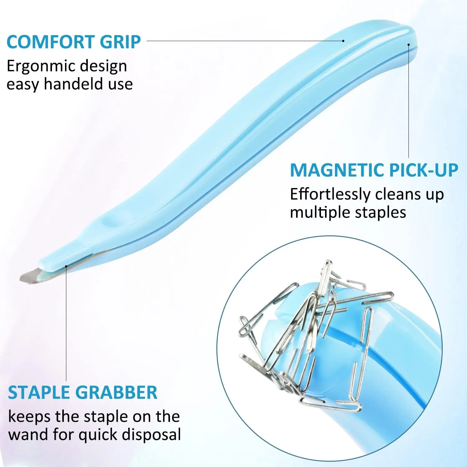 Each remover features a metal tip that slides under standard staples to lift them from paper without tearing. The built-in magnetic function helps collect removed staples, reducing mess and making disposal easier. The handle is shaped for a steady grip, allowing controlled use with minimal effort.