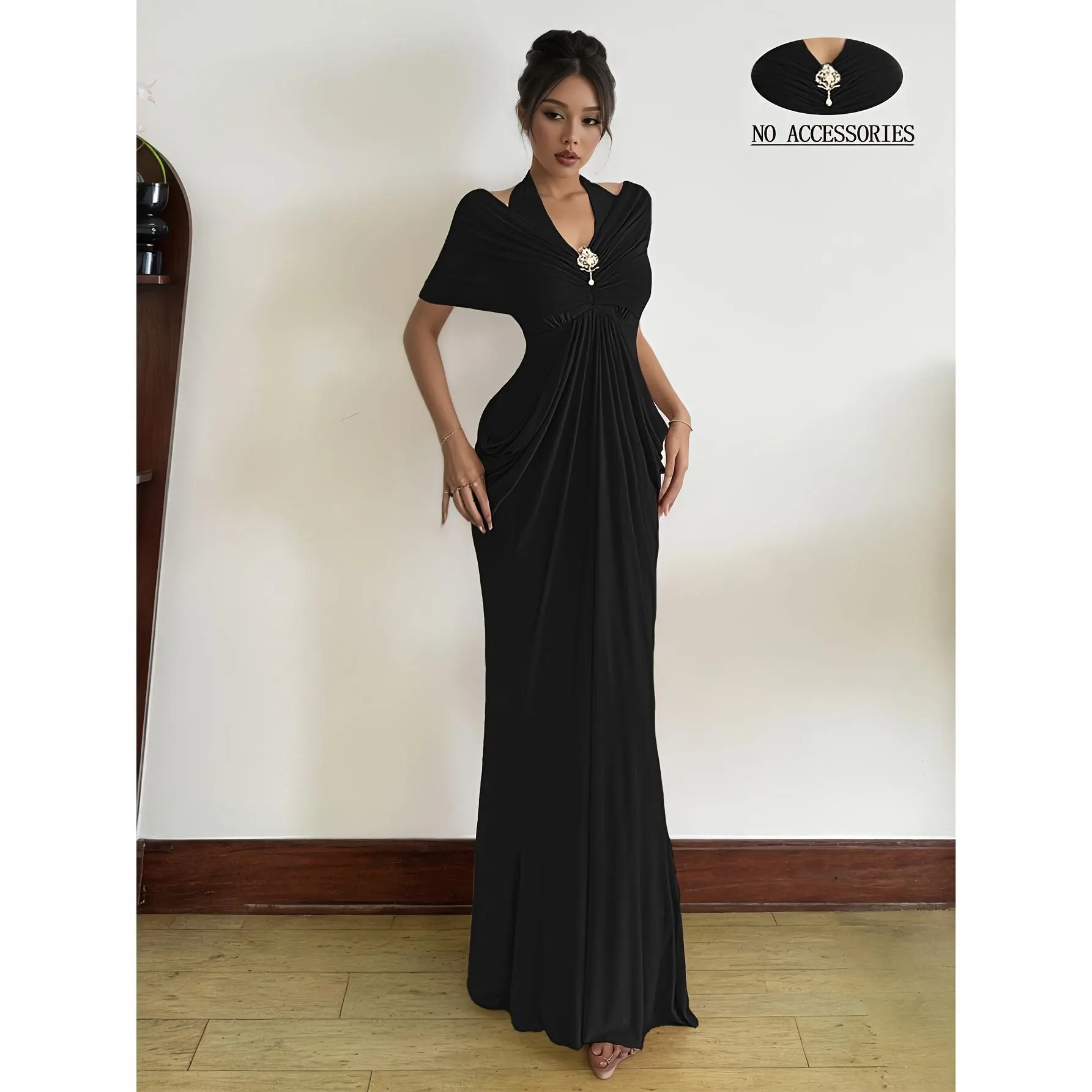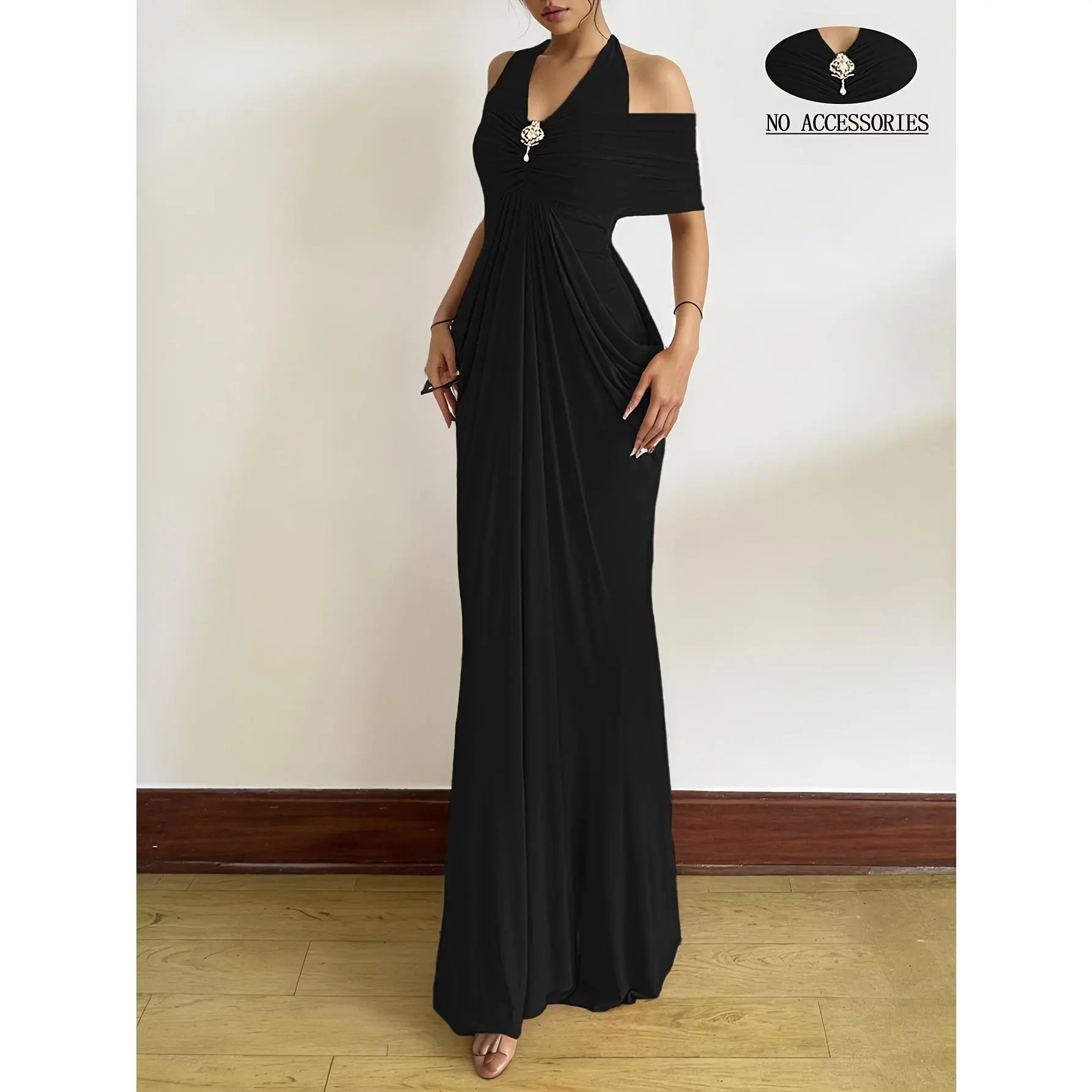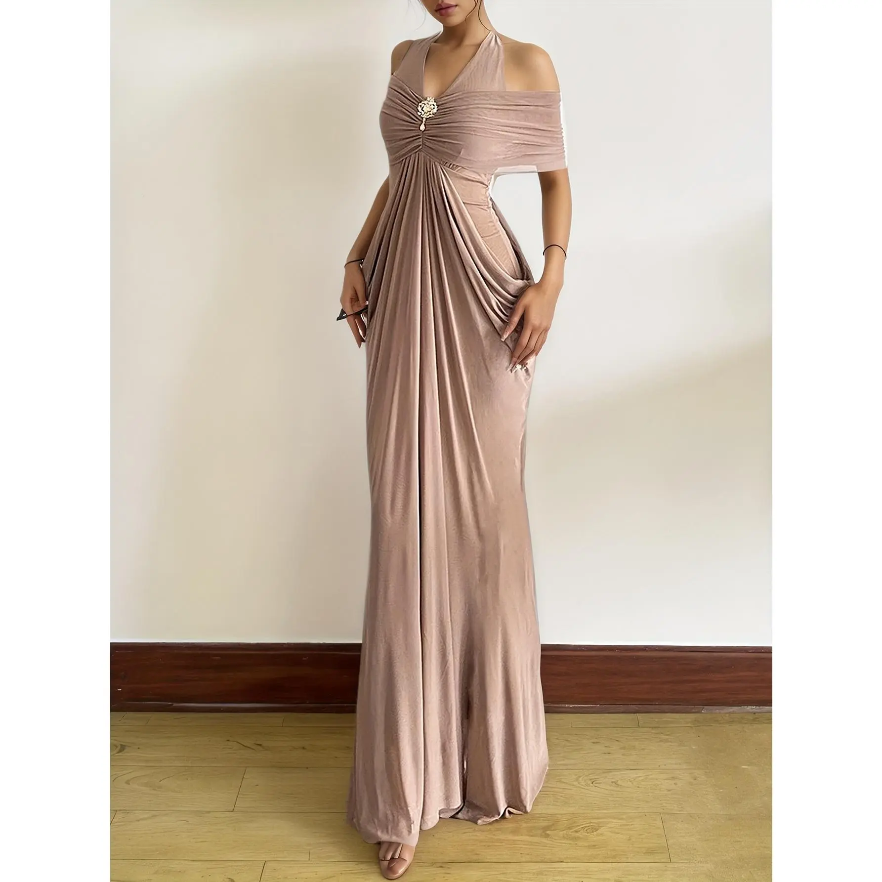 Women'S Halter Neck Mesh Maxi Dress, Off-Shoulder Mesh Decoration, Exquisite Buttons, Bridesmaid Outfit, Wedding Season, Party Dress, Elegant And Casual, Easy And Versatile, Sweet And Cute, Essential for Dates, Party Wear, New Autumn And Winter Clo