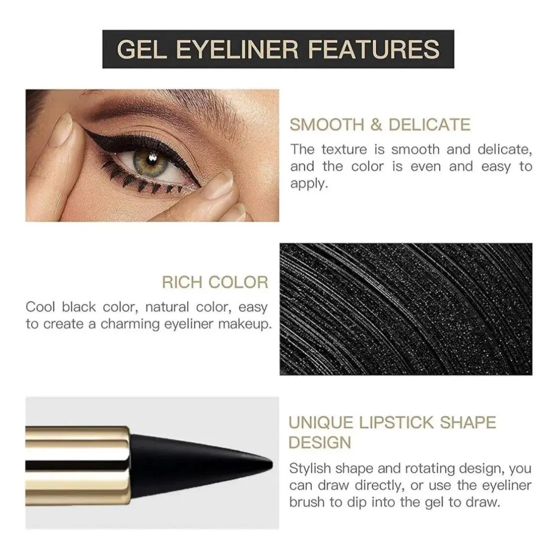 This 3-in-1 tool works as eyeliner, basic lip liner and simple eyebrow shaper, fits all your daily makeup needs in one stick.