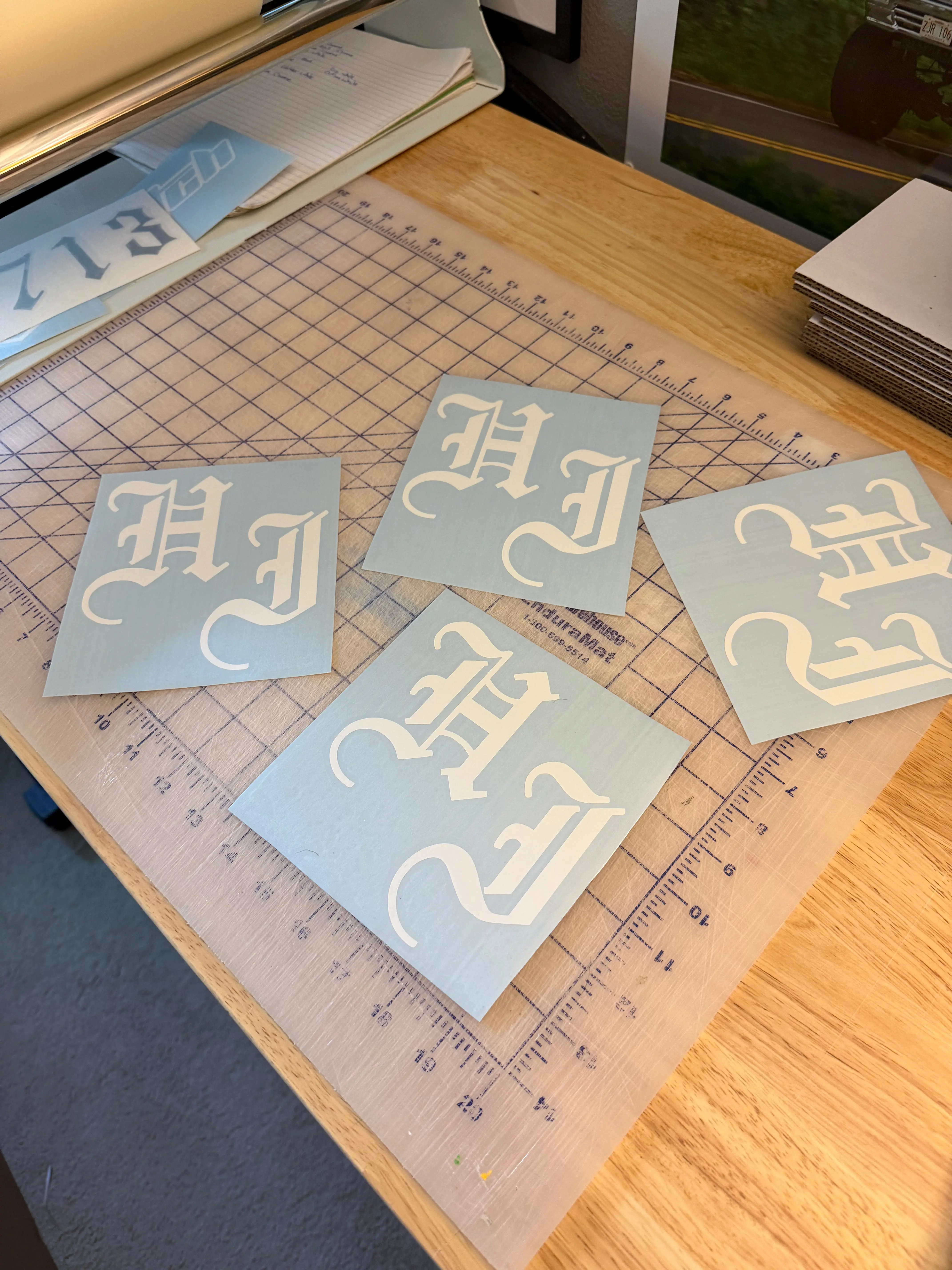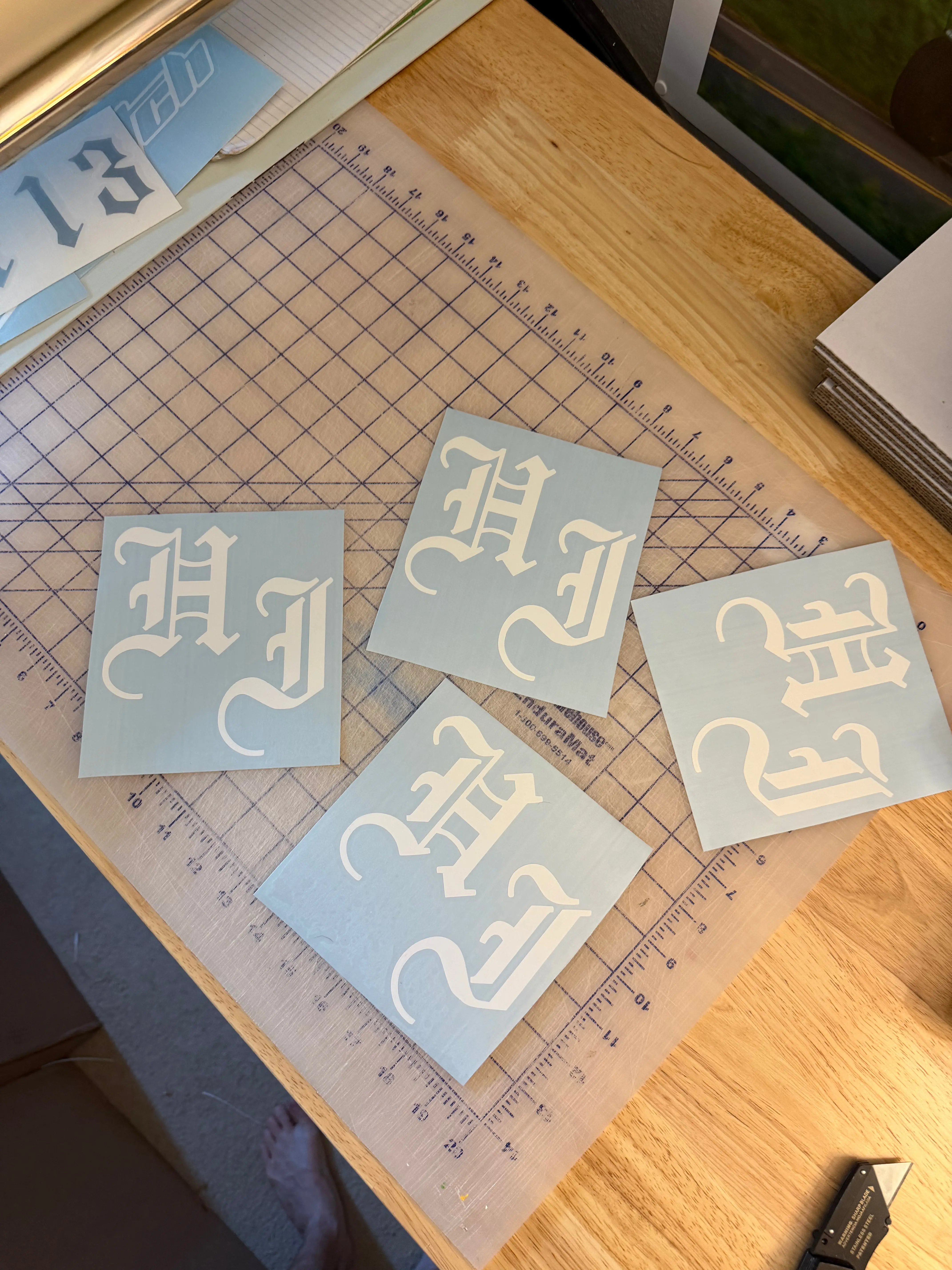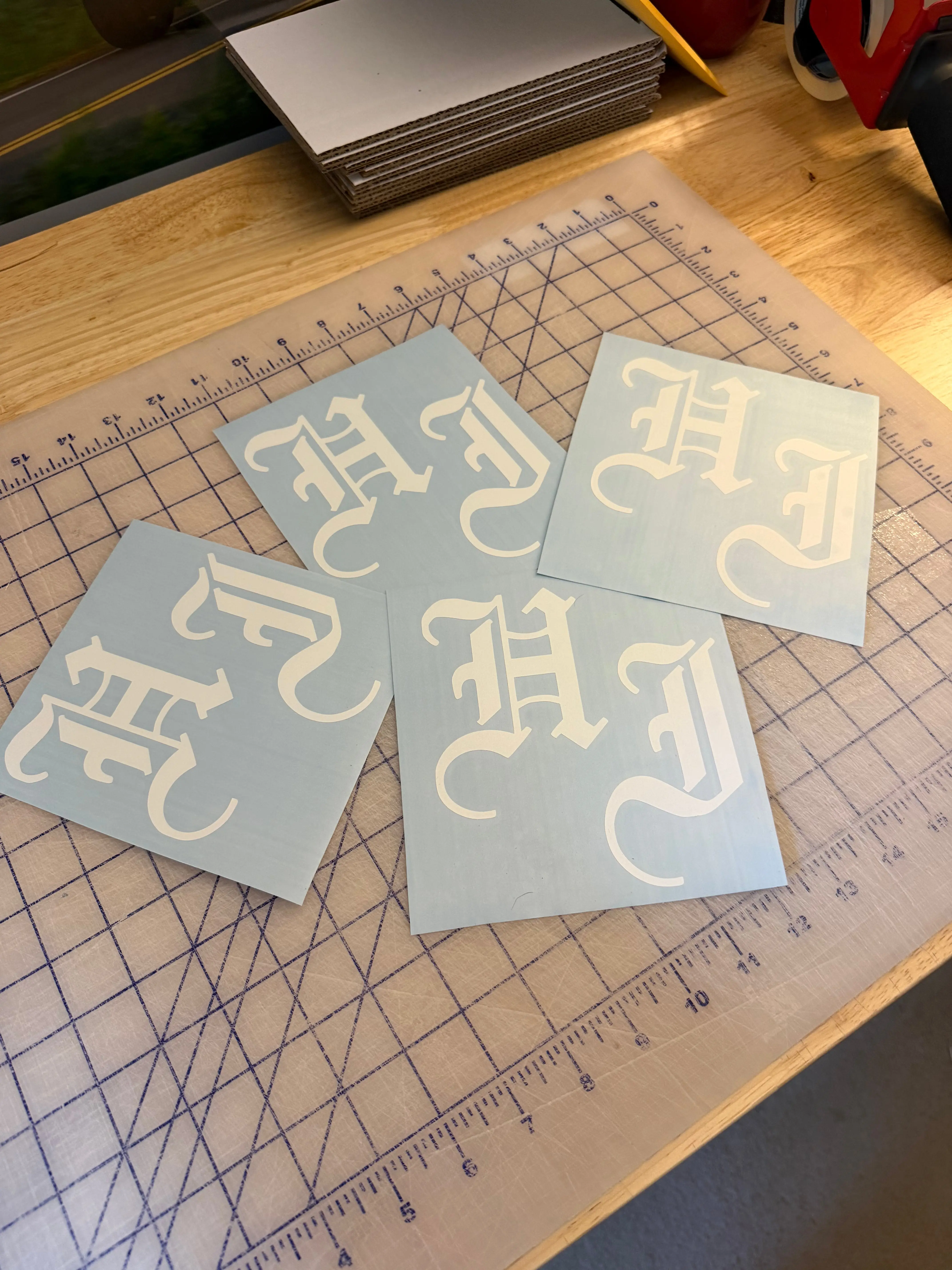 HI Old English Font Decal. Available in a wide variety of colors.