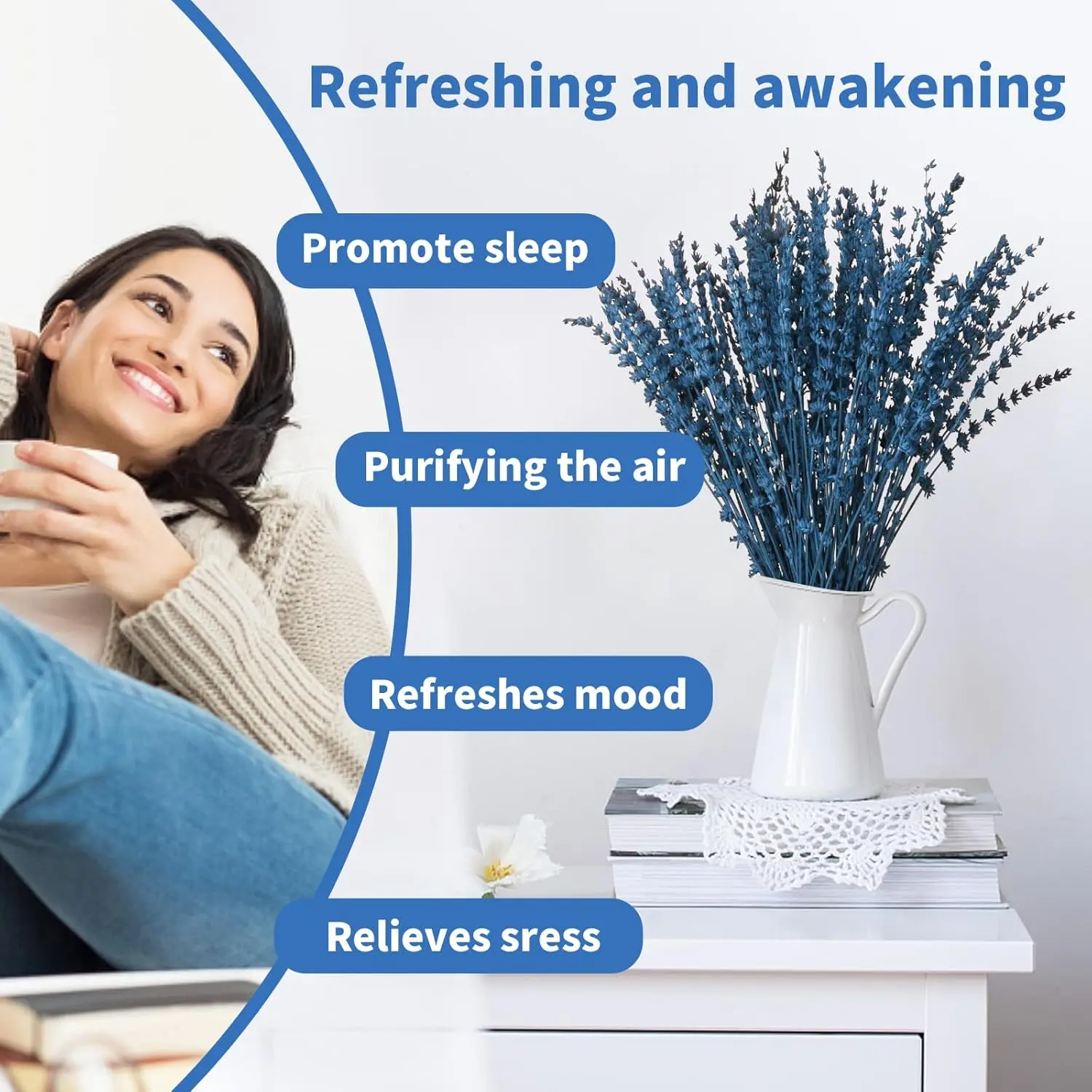 Enjoy the calming aroma of real dried lavender flowers that helps create a peaceful atmosphere.