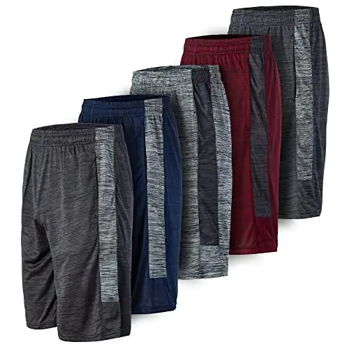 5 Pack: Men's Dry-Fit Sweat Resistant Active Athletic Performance Shorts