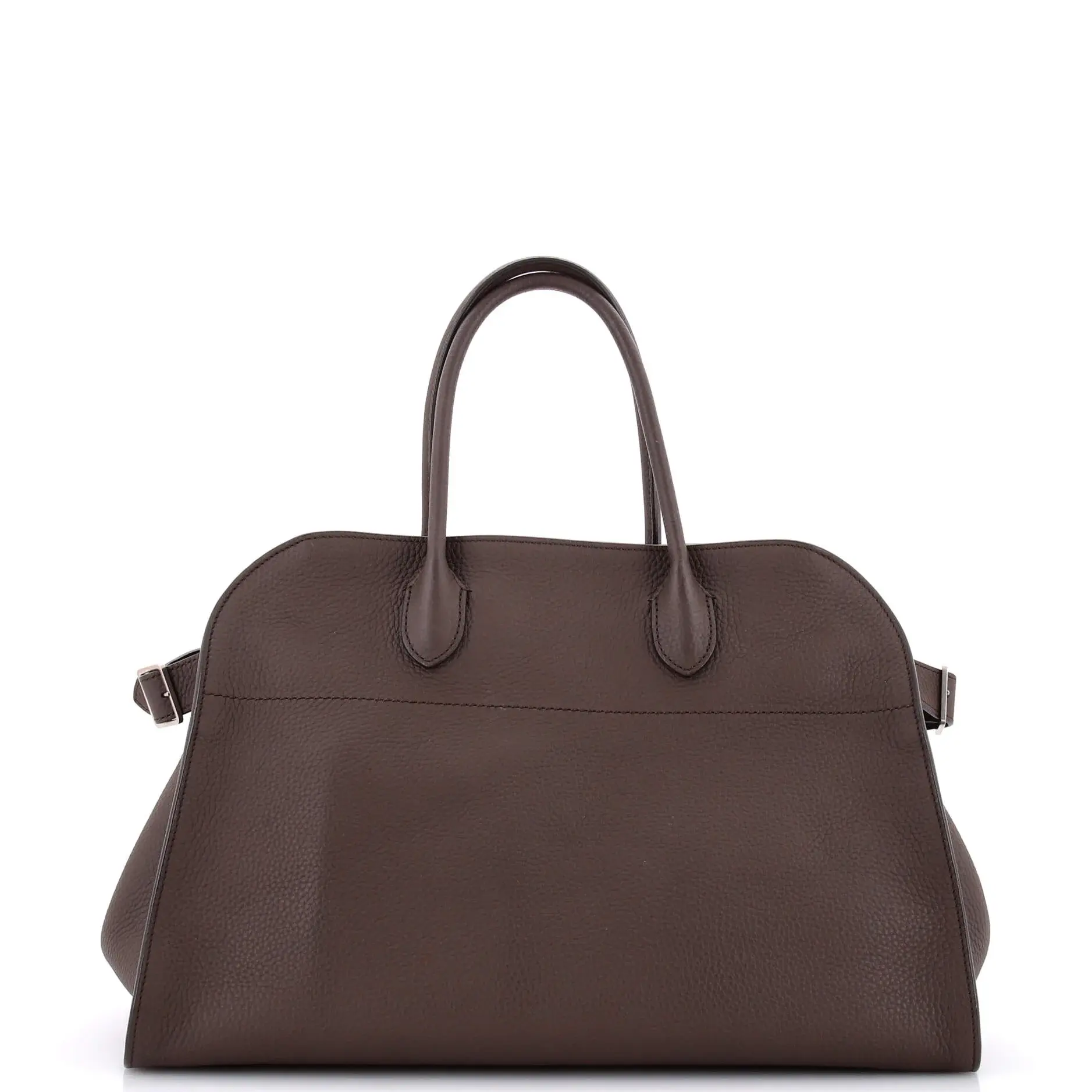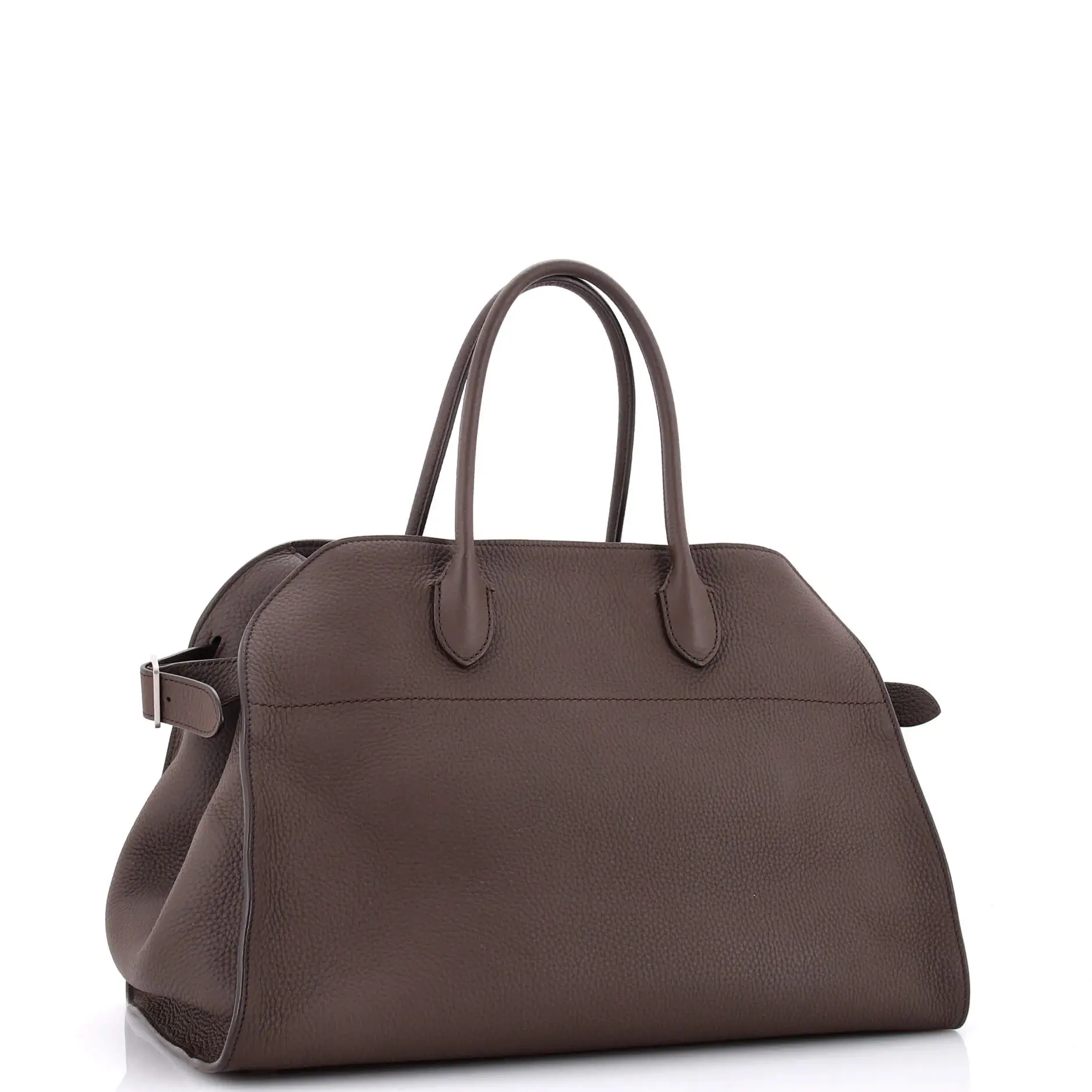 These are professional pictures of the actual item offered by Rebag. Condition: Great. Exterior: creases | Handles/Straps: creases | Interior: minor scuffs | Hardware: minor scratches Accessories: No Accessories Measurements: Height 11", Width 16", Depth 9" Designer: The Row Model: Margaux Tote Leather 15 Exterior Material: Leather Exterior Color: Brown Interior Material: Fabric Interior Color: Neutral Hardware Color: Aged Silver Item Number: 424506/1