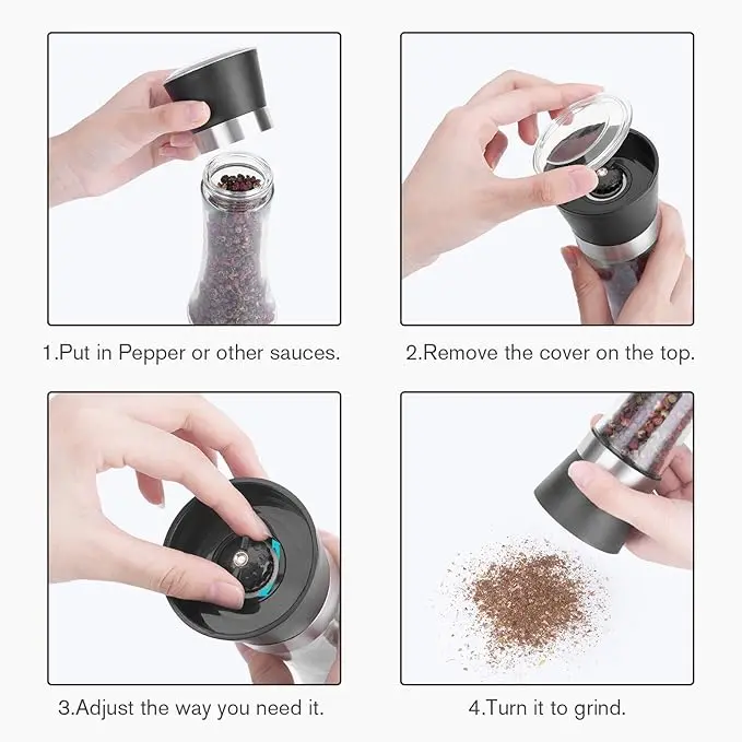 Enjoy complete control over your seasoning with an adjustable grinding mechanism. Easily twist the top knob to choose between fine or coarse grinding, making it simple to season everything from soups and salads to steaks and roasted vegetables. Whether you prefer finely ground salt or freshly cracked peppercorns, this grinder set delivers consistent results every time.