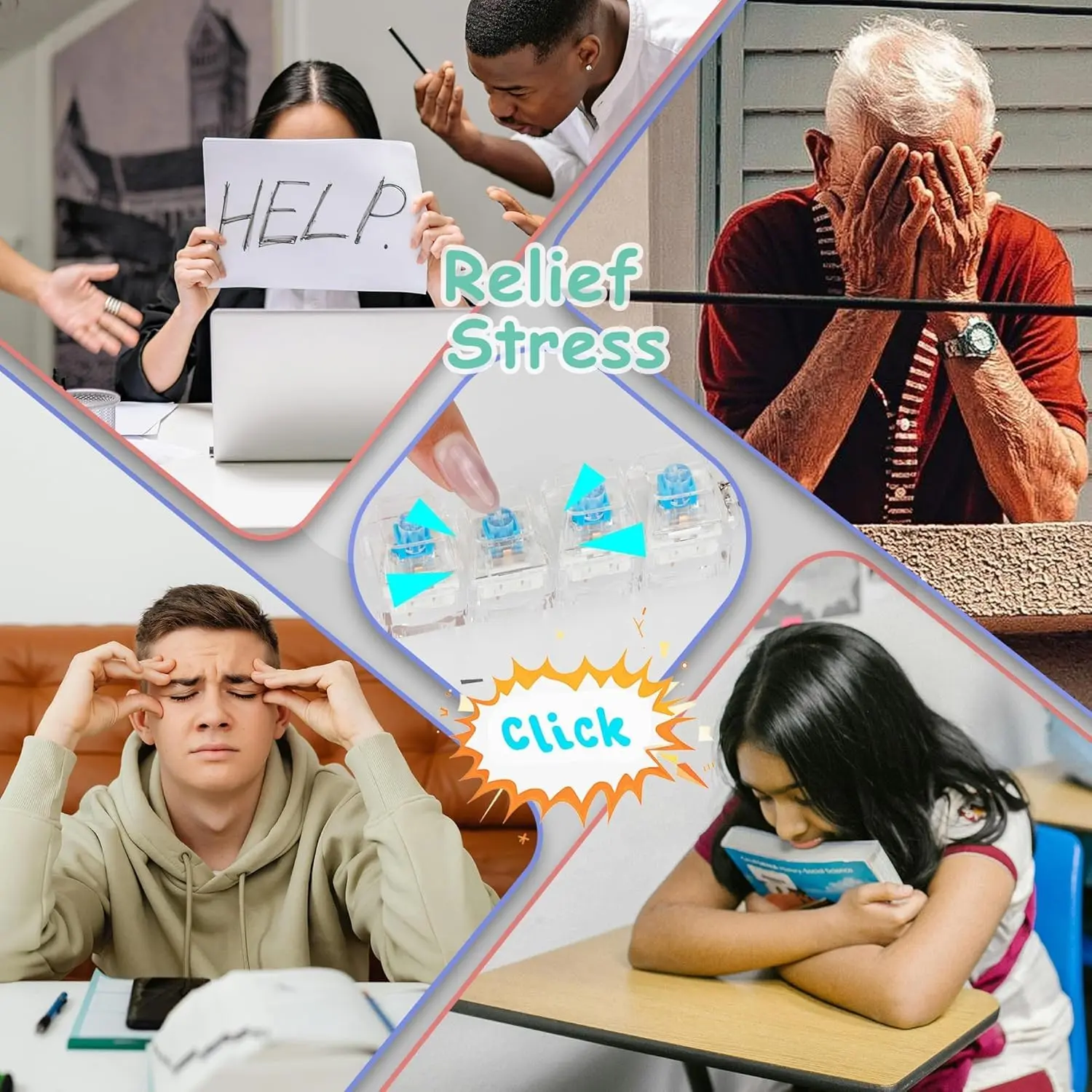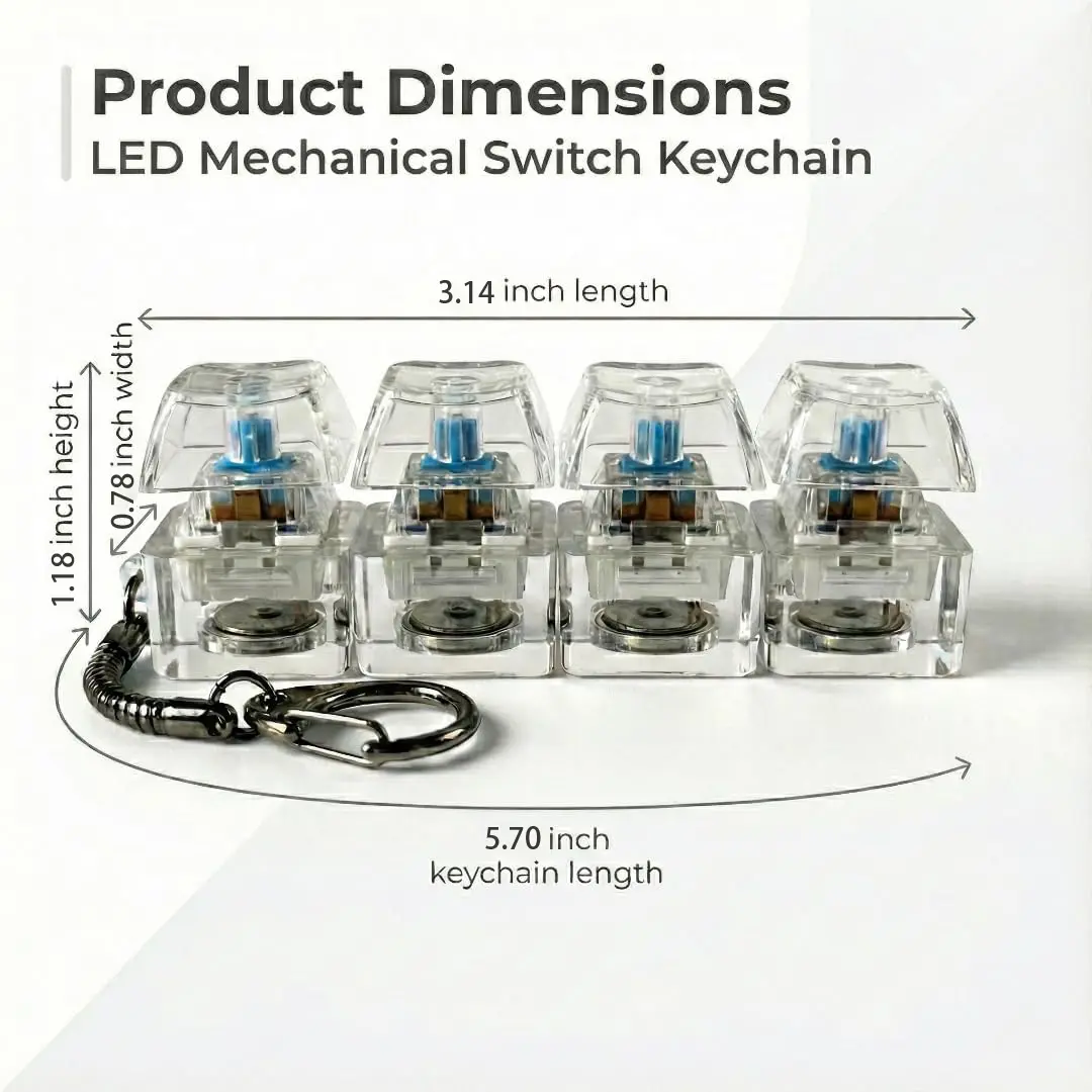 LED Mechanical Switch Fidget Keychain - The Ultimate Clicky Stress Relief Toy! If you love the satisfying feel of mechanical keyboards, this fidget toy is made for you! Each key features a real clicky mechanical switch with a bright blue LED light that activates with every press, giving you instant stress relief at your desk, on the go, or anywhere you need it. The compact keychain design means you can take your favorite clicky sound with you everywhere! Product Details: - 4 real clicky mechanical switches with satisfying feedback - Bright blue LED light that lights up with every press - Clear durable acrylic construction with metal keychain ring - Compact size, perfect for keys, backpacks, or desk decor - Batteries included, ready to use right out of the box! Great gift for: - Programmers, developers & coders needing desk stress relief - Gamers & mechanical keyboard enthusiasts - Office workers & students needing focus/relief - Birthdays, Valentine's Day, or just because! Disclaimer: This is a generic mechanical switch fidget toy, not affiliated with any keyboard brand, intellectual property holder, or media property.