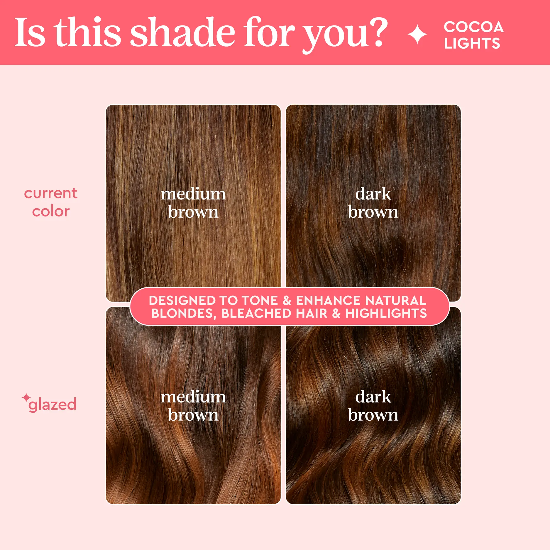 For medium to dark brown hair with highlights or balayage to boost warm, deep brown tones for enriched chocolate highlights.