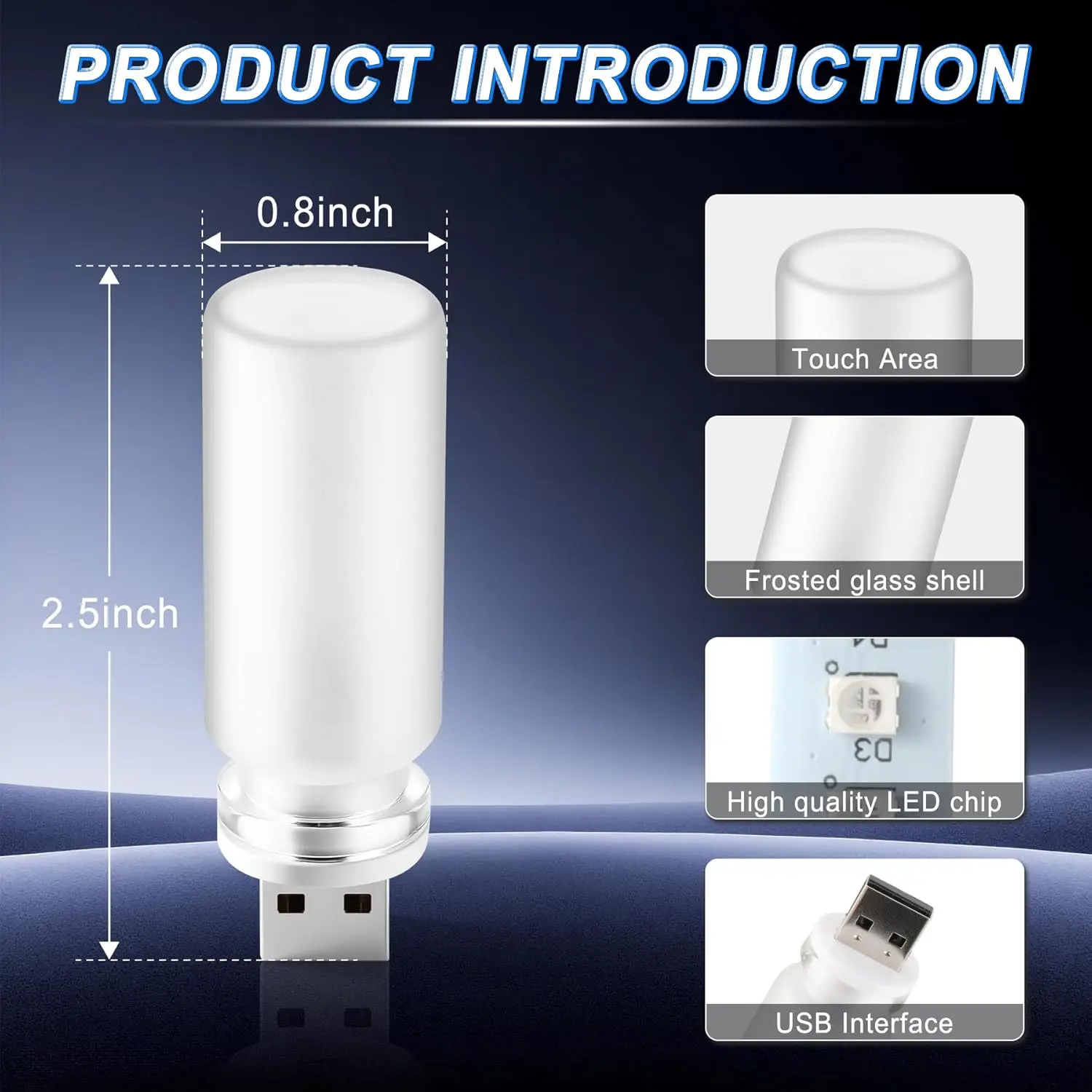Control: Gently the sensing area the top of the bottle to turn / the light mode, long press the sensing area to turn off the light. Note that if the light is not turned off and unplugged from the USB interface, the next time the USB interface is inserted, the light will display the same light mode as when it was unplugged before.